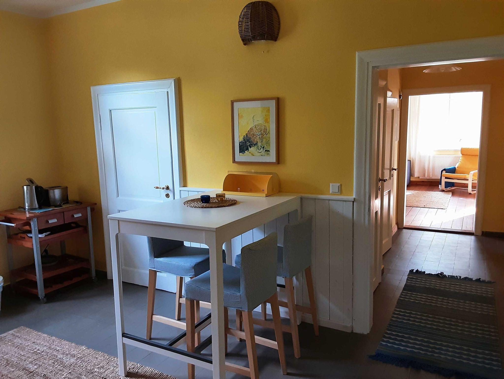 Die Betten sind bezogen. Die separate Küche ist voll ausgestattet ( Kühlschrank ohne Gefrierfach, Herd mit Backofen, Mikrowelle, Wasserkocher, Kaffeemaschine...) Vom Esszimmer aus kann man direkt auf die Terrasse und in den Garten gehen. Von hier sind es nur noch ein paar Schritte bis zur Elde und dem Bootsteg. In einem kleinen Nebenraum befindet sich ein Waschtrockner. Glasfaserinternet mit W-lan (100 mbit) ist vorhanden.