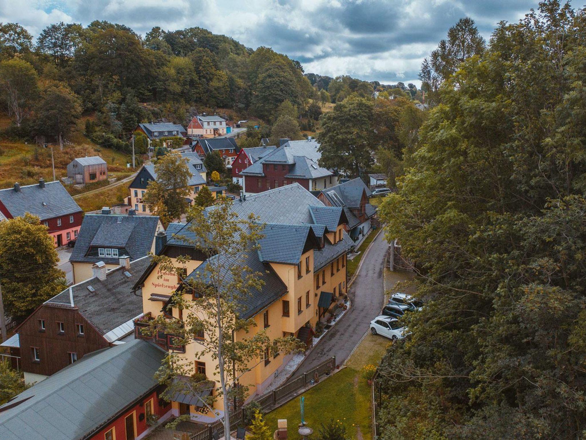 Der Spielzeughof bietet ein Fachgeschäft erzgeb. Kunsthandwerks, eine Pension mit verschiedenen Zimmergrößen sowie auch Ferienwohnungen für jeden Geschmack. Das Haus liegt gleich neben dem ehemaligen Bergbau “Binge”, die weltberühmte Bergkirche ist in Sichtweite und der Fernwanderweg Kammweg führt direkt an der Haustür vorbei. So idyllisch ist es bei uns. Und gleichzeitig auch so zentral. In nur wenigen Schritten sind Sie in unserem Ladengeschäft wie auch in zahlreichen Restaurants & Bäckereien.