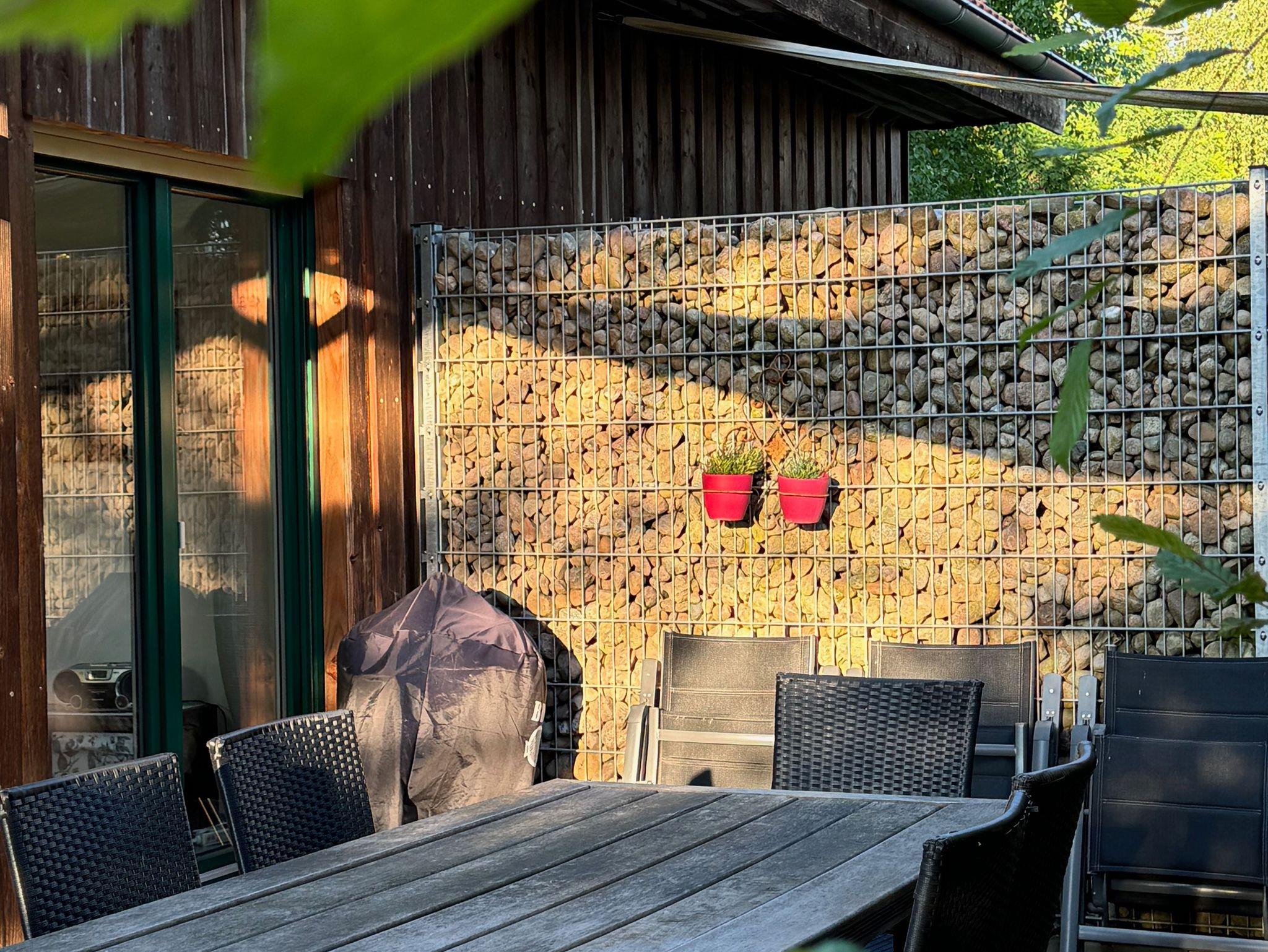 Die Ferienwohnung Holzmichel bietet Platz für bis zu 4 Personen in einem Doppelzimmer und einem Zimmer mit Einzelbetten. Die offene Küche im Erdgeschoss geht in einen Wohnbereich über, von dort aus gelangt man auf die Terrasse. Das Badezimmer im Erdgeschoss umfasst Dusche und WC, im ersten Stock befindet sich zwischen den Schlafzimmern ein Etagen-WC.