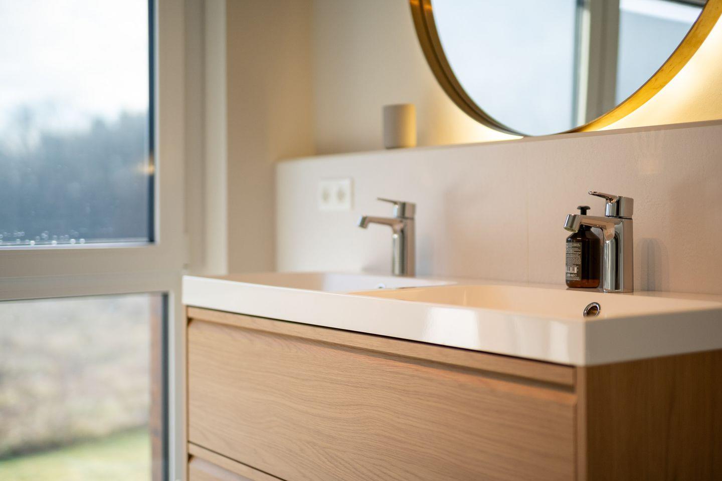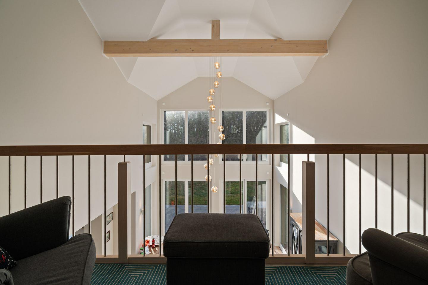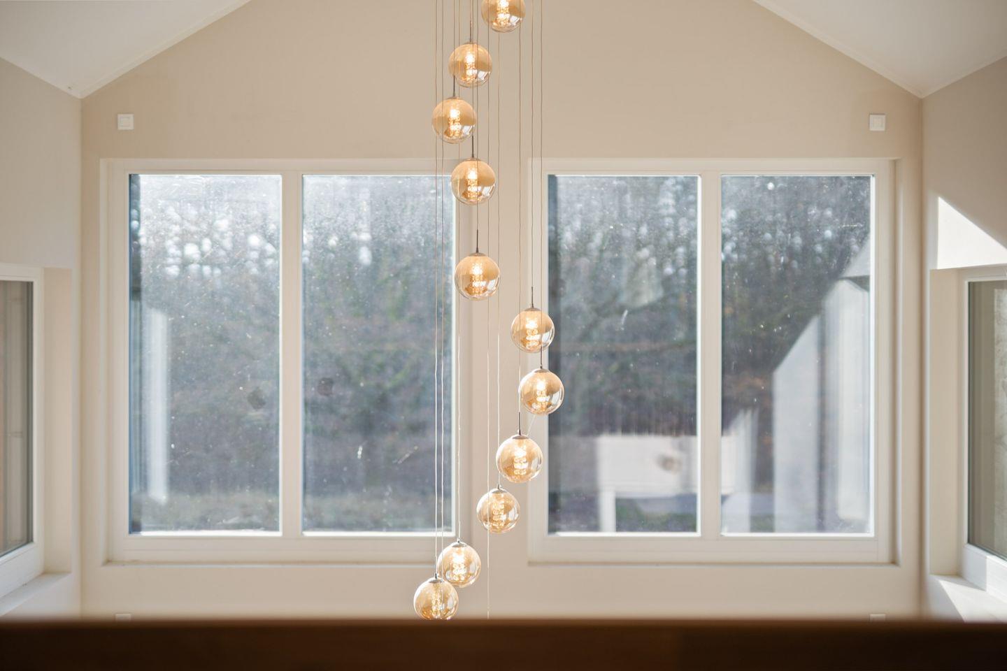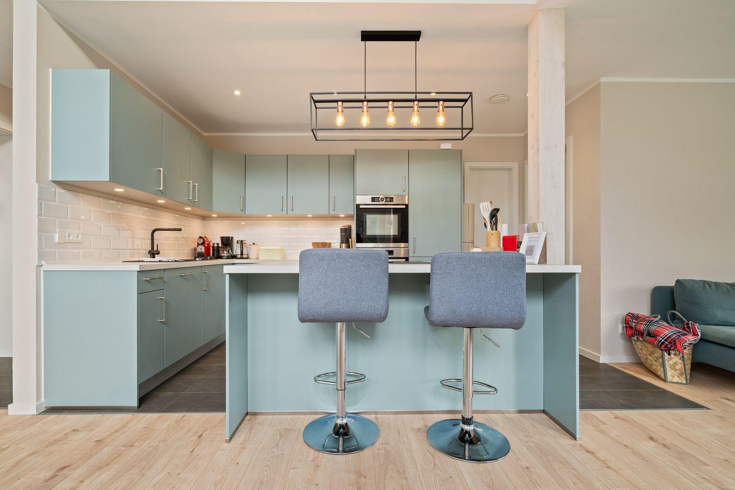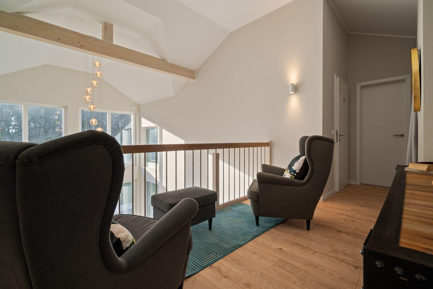 Das Herzstück des Hauses bildet der offene Wohnbereich mit einer modernen Sofaecke und gemütlichem Essbereich. Bodentiefe Fenster schaffen eine helle und freundliche Atmosphäre und eröffnen den Blick auf die umliegende Natur. Die offene, voll ausgestattete Küche, direkt angrenzend an das Wohnzimmer, ist hochwertig eingerichtet und umfasst unter anderem einen Induktionsherd, Backofen, Mikrowelle, extra Gefrierschrank, Kühlschrank, Geschirrspüler sowie umfangreiche Küchenutensilien, eine Küchenmaschine und einen Mixer. Für Kaffeeliebhaber stehen sowohl eine Kaffeemaschine als auch eine Nespresso-Espressomaschine bereit. Selbstverständlich sind Gewürze, Geschirr und Besteck sowie Reinigungsmittel vorhanden.