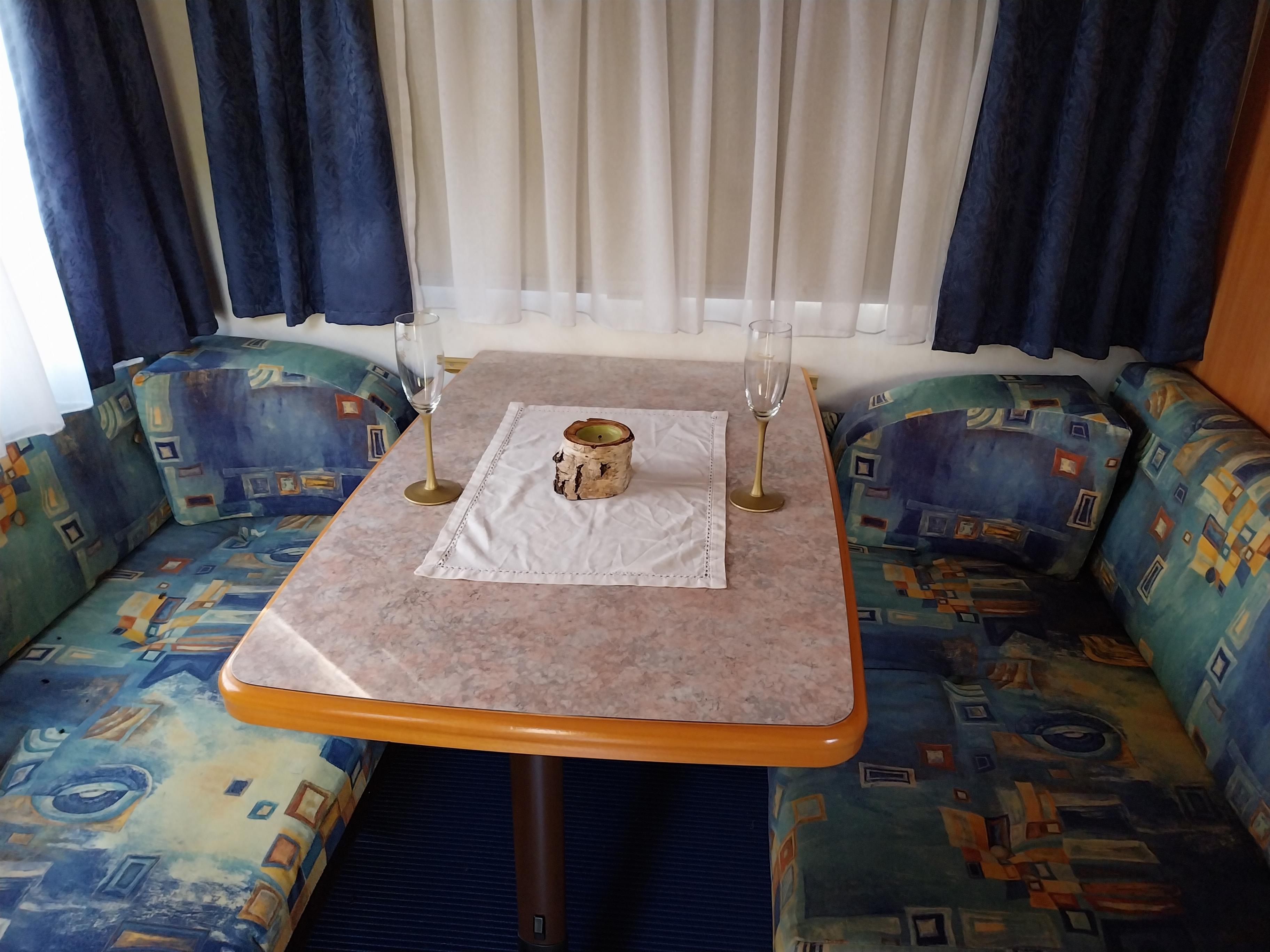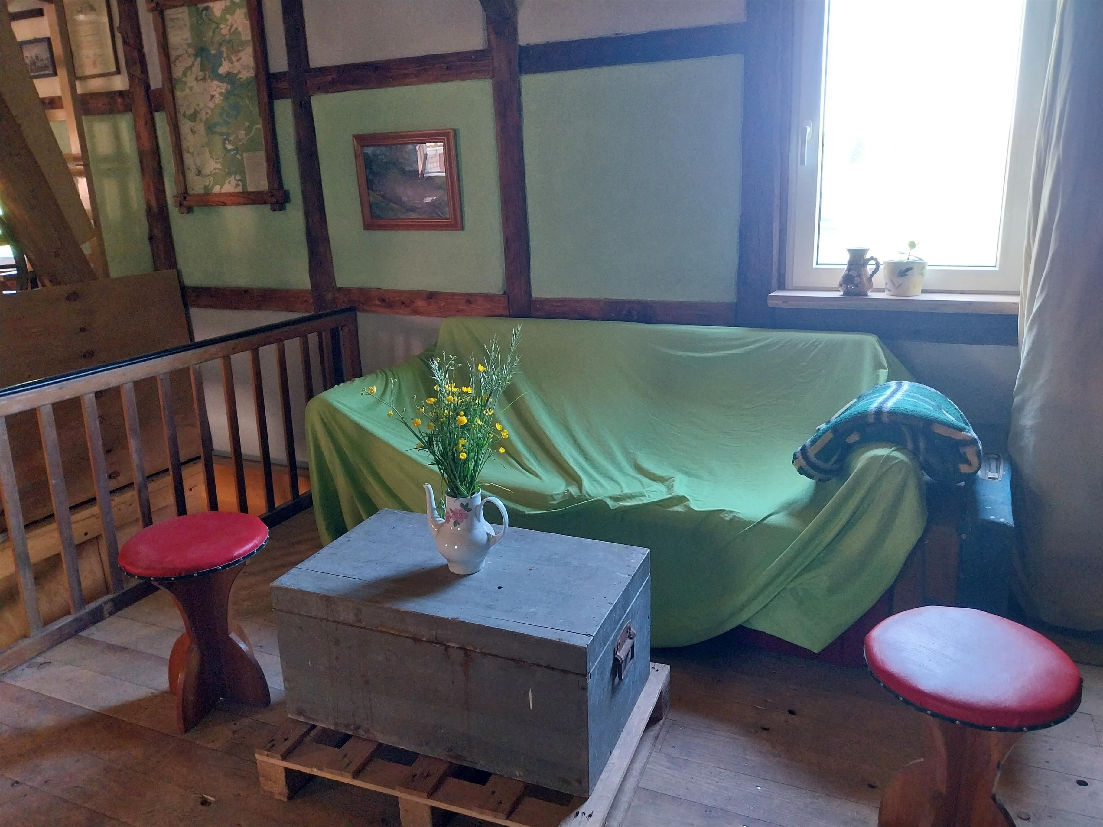 Der Wohnwagen Karl ist original eingerichtet. Küche und WC sind nicht benutzbar.