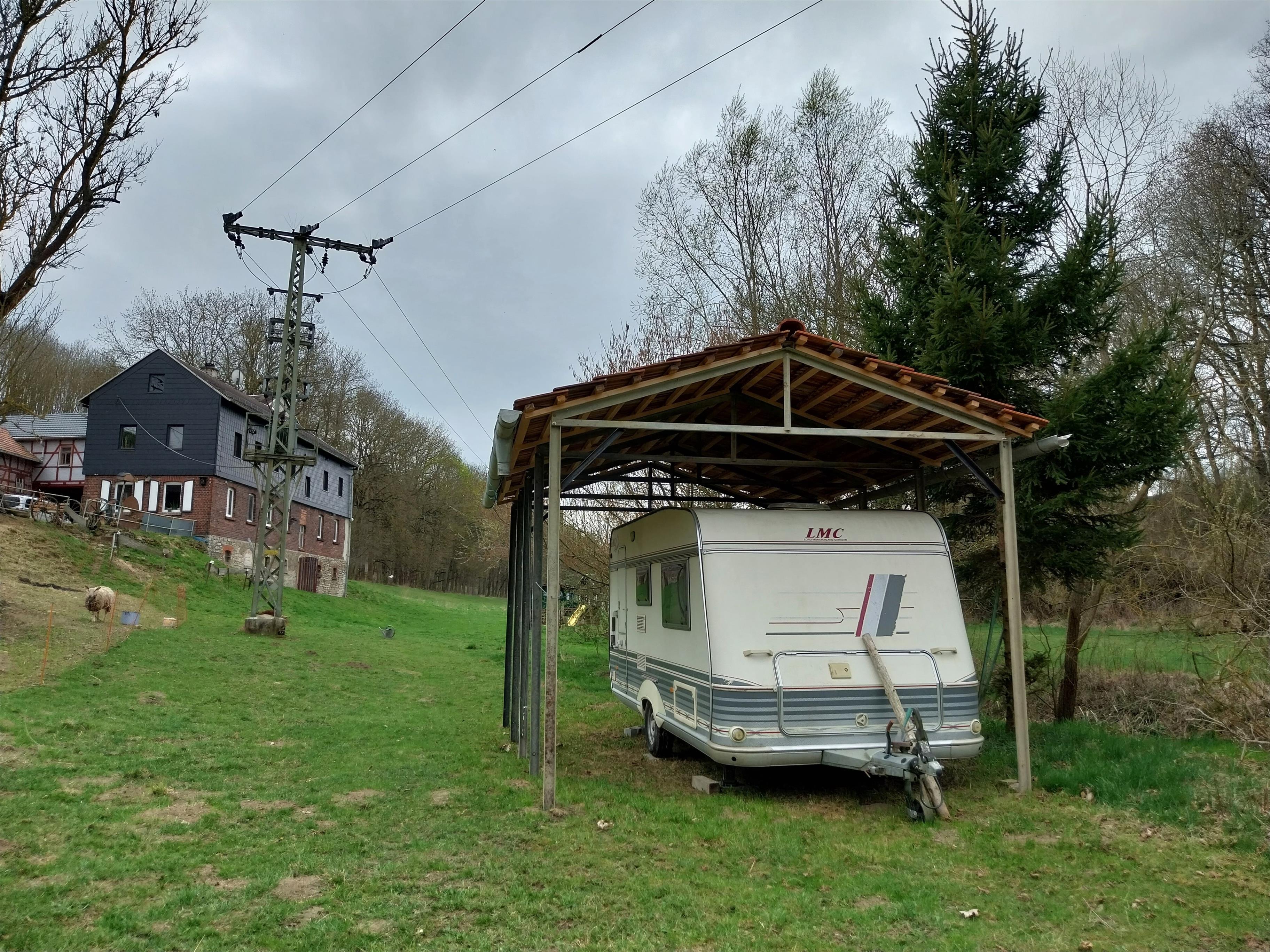 Die Wohnwagen Frieder und Karl stehen ungefähr 200 m in Sichtweite auseinander.