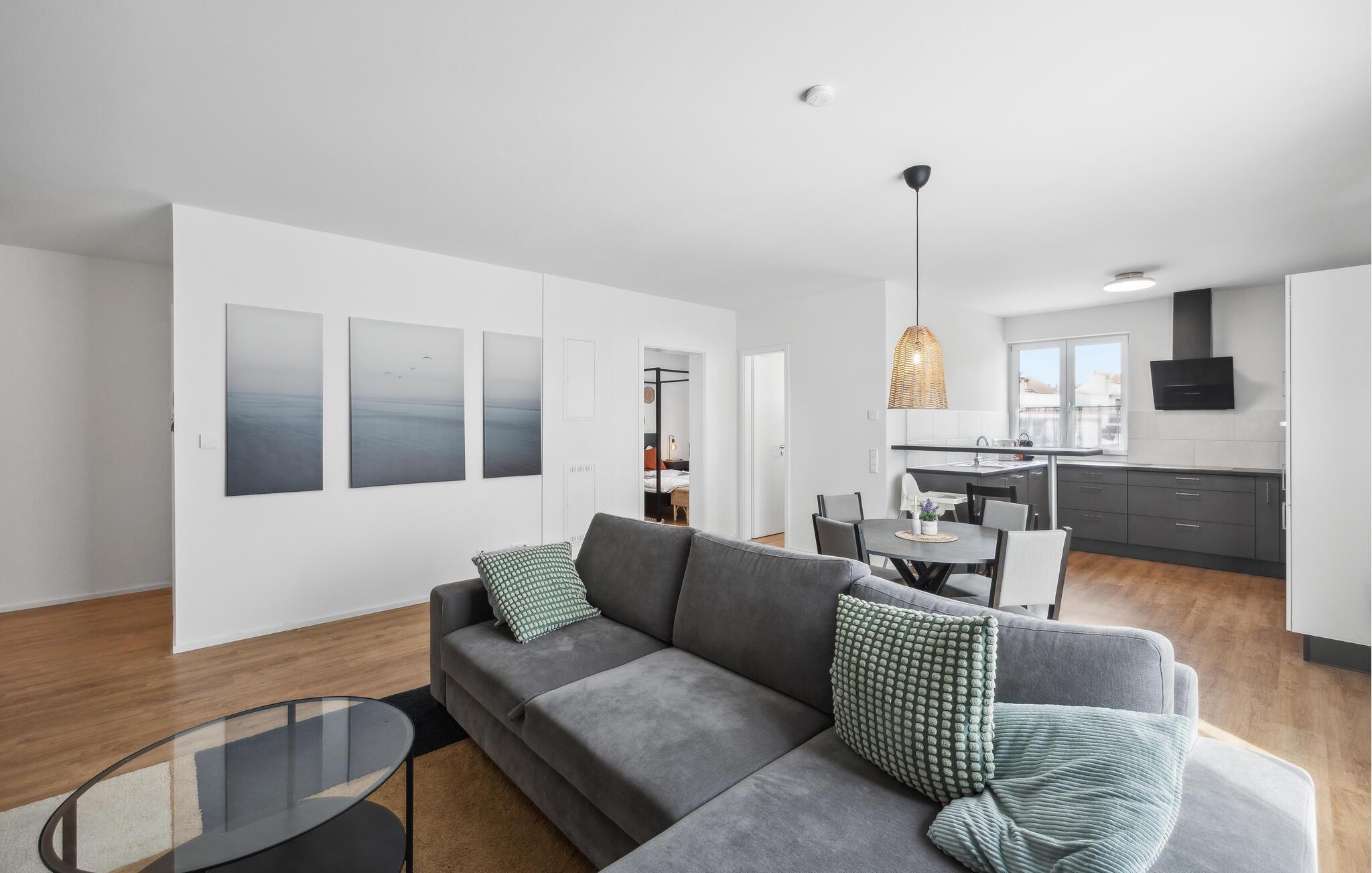 Velkommen til Lörrach, der ligger tæt på grænsen til både Schweiz og Frankrig, og hvor I får base i denne fine lejlighed. Indretningen fremtræder pænt og indbydende med varme trægulve, bløde møbler og et veludstyret køkken, hvor familiens kokke kan kræse om livretterne, når I er hjemvendt fra dagens udflugter. Senere kan I hive brætspillene frem eller trække over i sofaen med snacks og en god film på tv'et, mens I lægger planer for de kommende dage.