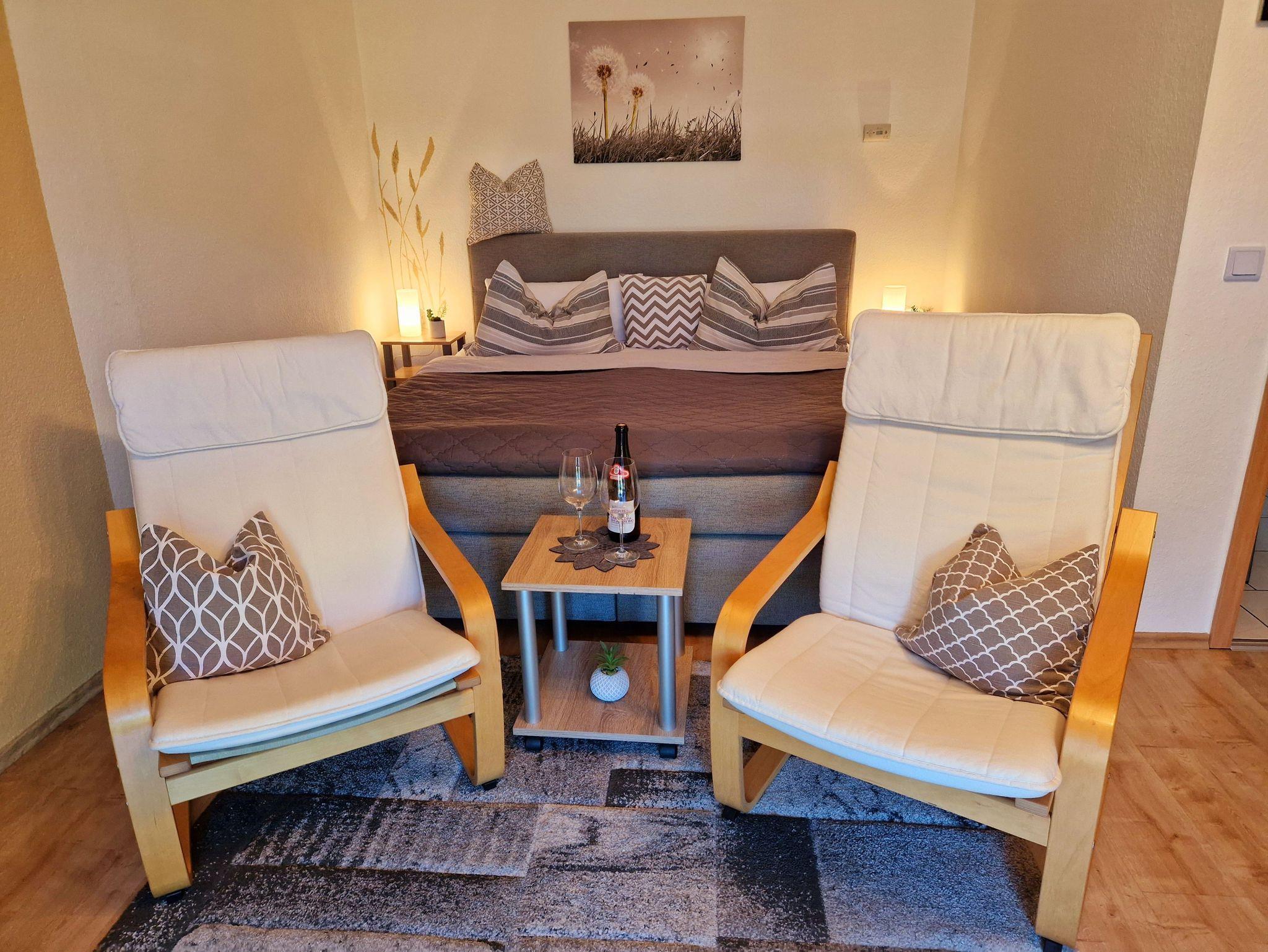 Unterteilt ist die Ferienwohnung in Wohn- & Schlafbereich, Küche und Badezimmer mit Dusche/WC.