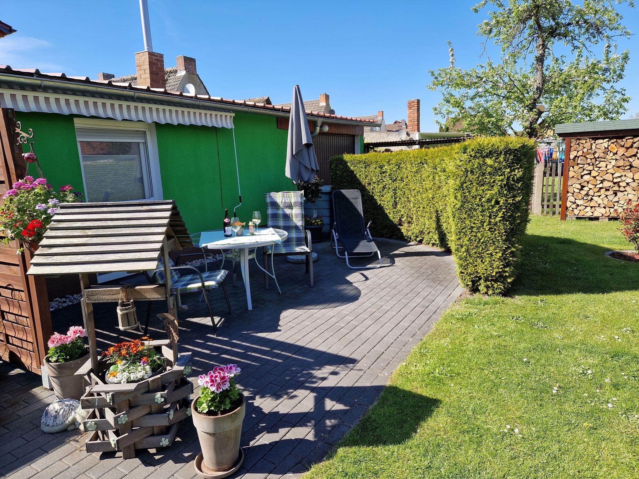 Der Garten kann genutzt werden und hat eine Liegewiese mit Grillmöglichkeit und großer Terrasse zum entspannen.