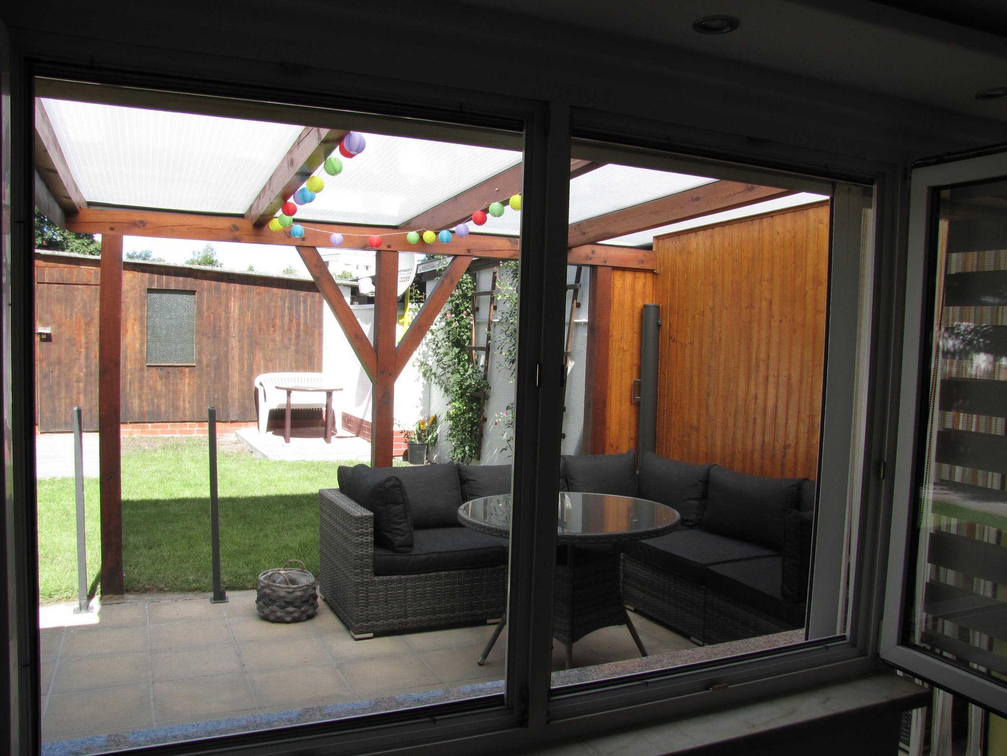 Vom Wohnzimmer aus haben Sie Zugang zu einer überdachten Terasse, auf der Lounge-Möbel zum Entspannen und gemeinsamen Sitzen einladen. Neben der Terasse verfügt der Hof Ihres Urlaubsdomizils auch noch über einen Grillplatz und eine Raucher-Ecke.
