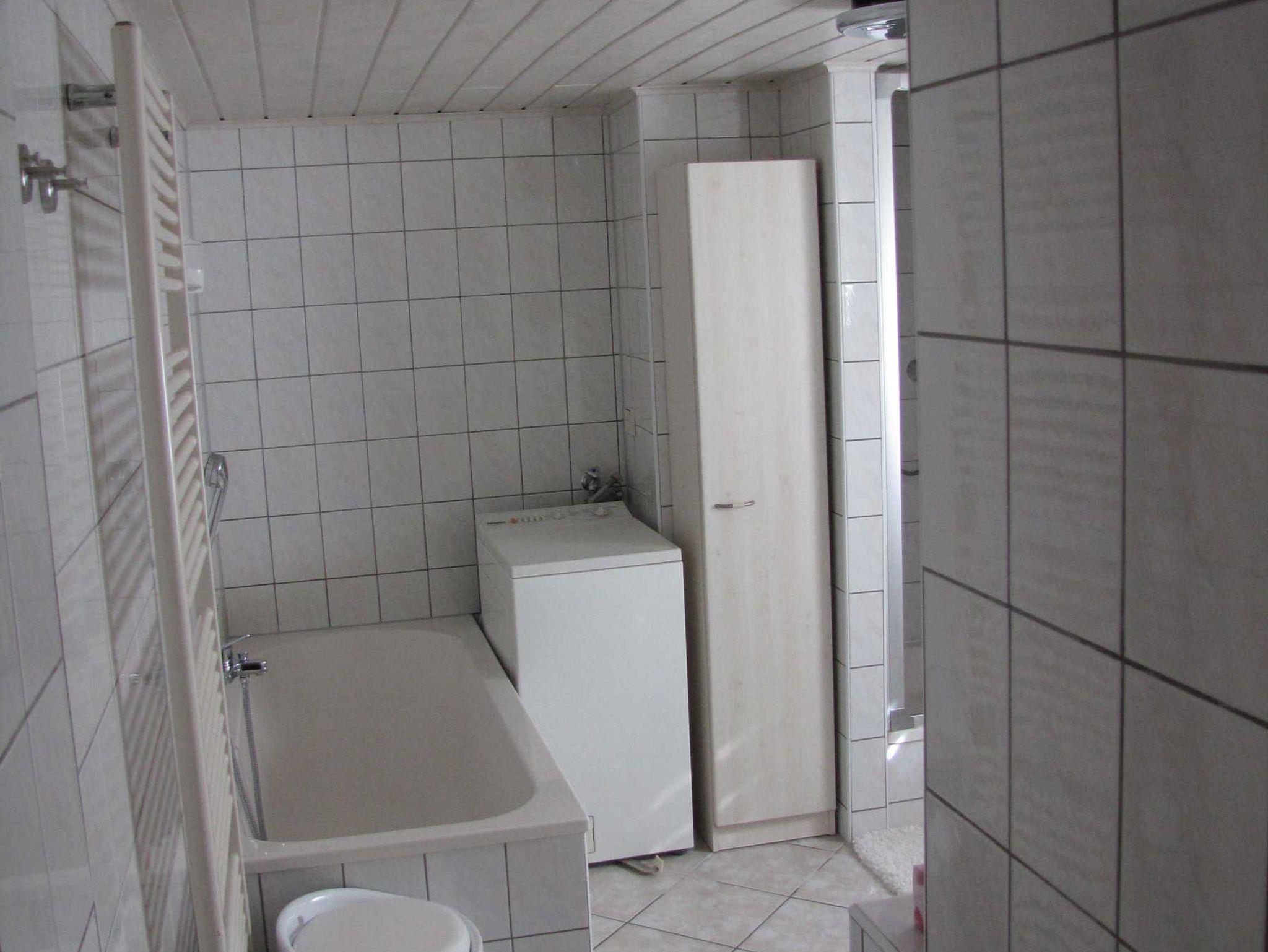 Das Badezimmer verfügt neben Waschbecken und WC auch über Badewanne und Dusche. Außerdem können Sie die dort befindliche Waschmaschine und den elektrischen Wäschetrockner im Schlafzimmer gern mitbenutzen.