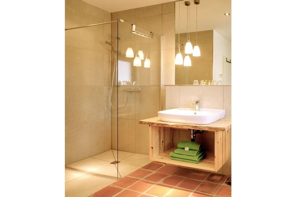 Vores hyggelige ferielejlighed ligger lige i hjertet af Lübben i Spreewald-regionen, direkte ved Agurk-cykelstien. Den er cirka 55 kvadratmeter stor og ligger i stueetagen af vores nye hus. Den er elegant og moderne indrettet. Den består af et separat soveværelse med en dobbeltseng, en stue med en komfortabel sovesofa, et moderne køkken og et rummeligt badeværelse med bruseniche. Terrassen fører direkte ud til haven.