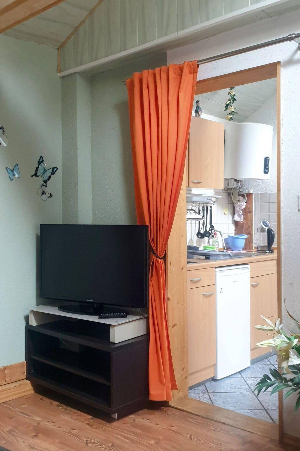 Inside you will find an invitingly designed living room and bedroom, equipped with satellite TV and wireless LAN for your entertainment and comfort. The kitchen is fully equipped with everything you need for self-catering: Fridge, microwave, hot water cooker, coffee machine and toaster. In addition, we provide bed linen and towels and for our younger guests there is a free baby cot.