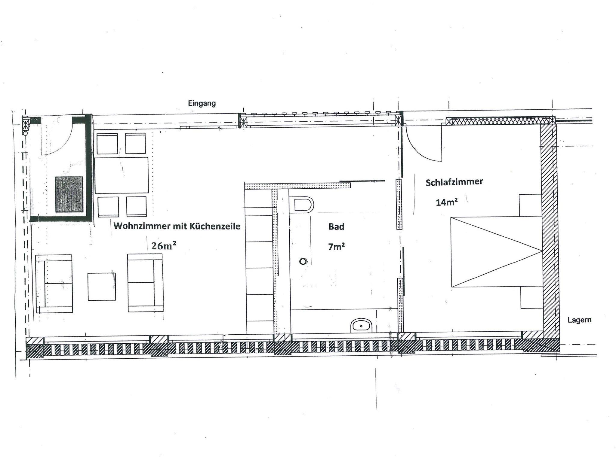 In der offenen Küche findest du alles, was du brauchst: Herd, Backofen, Kühlschrank mit Gefrierfach, Geschirrspüler sowie Toaster, Wasserkocher und Kaffeemaschine. Am Esstisch hast du einen schönen Blick in den Innenhof. Bitte beachte: In der Wohnung wird nicht geraucht.