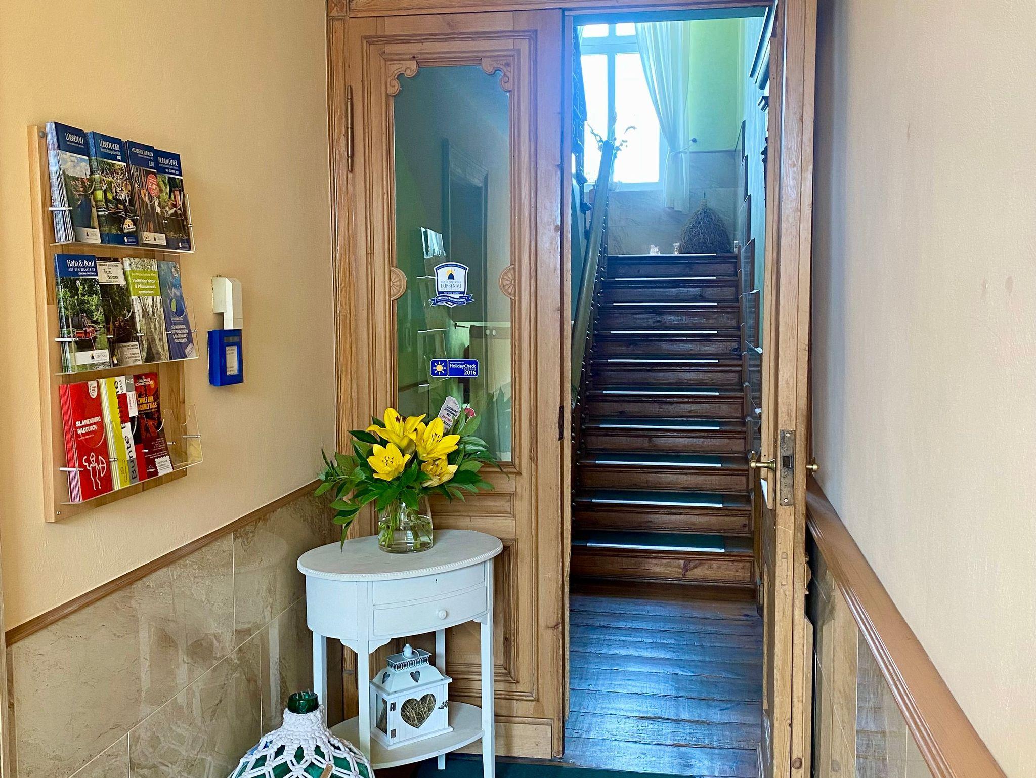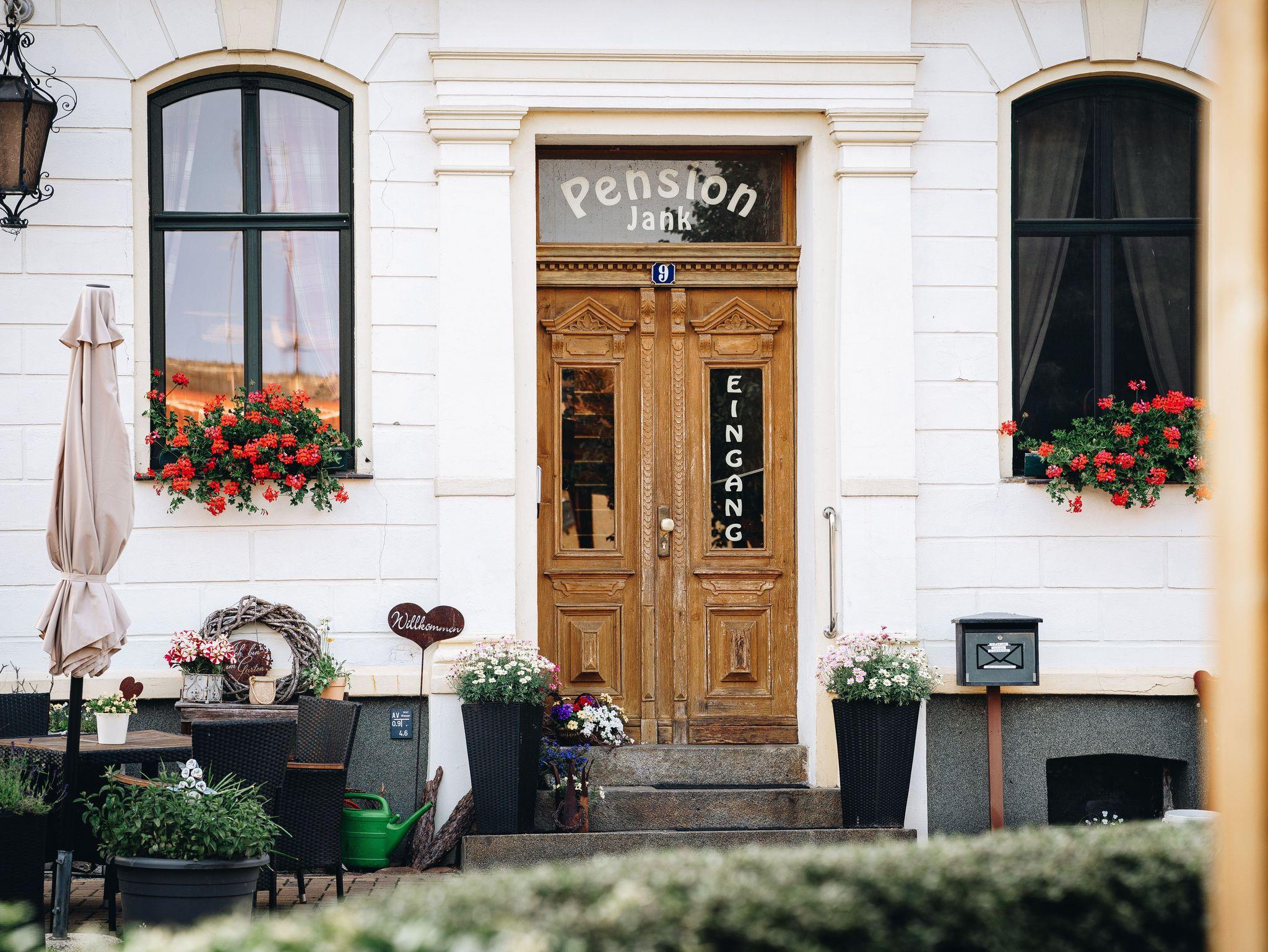 Für Fahrräder steht eine abschließbare Fahrradgarage mit Lademöglichkeit für E-Bikes und E-Scooter zur Verfügung. Ein kostenloser Parkplatz befindet sich ca. 50 Meter entfernt. Vor dem Haus lädt eine kleine Sitzecke zum Verweilen und Entspannen ein. Die Pension ist nicht barrierefrei und Haustiere sind nicht gestattet.