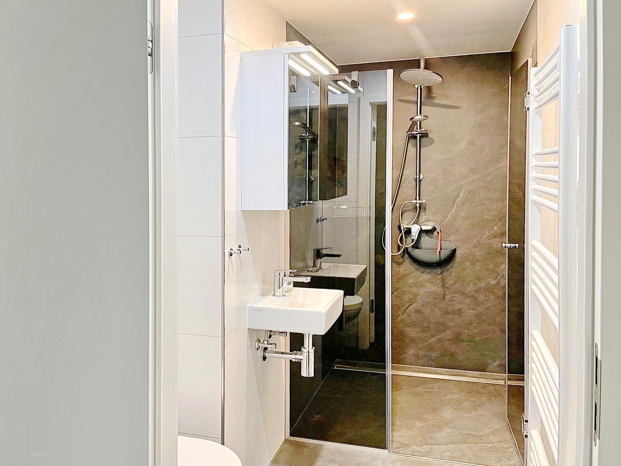 Badeværelse med bruser og badekar
