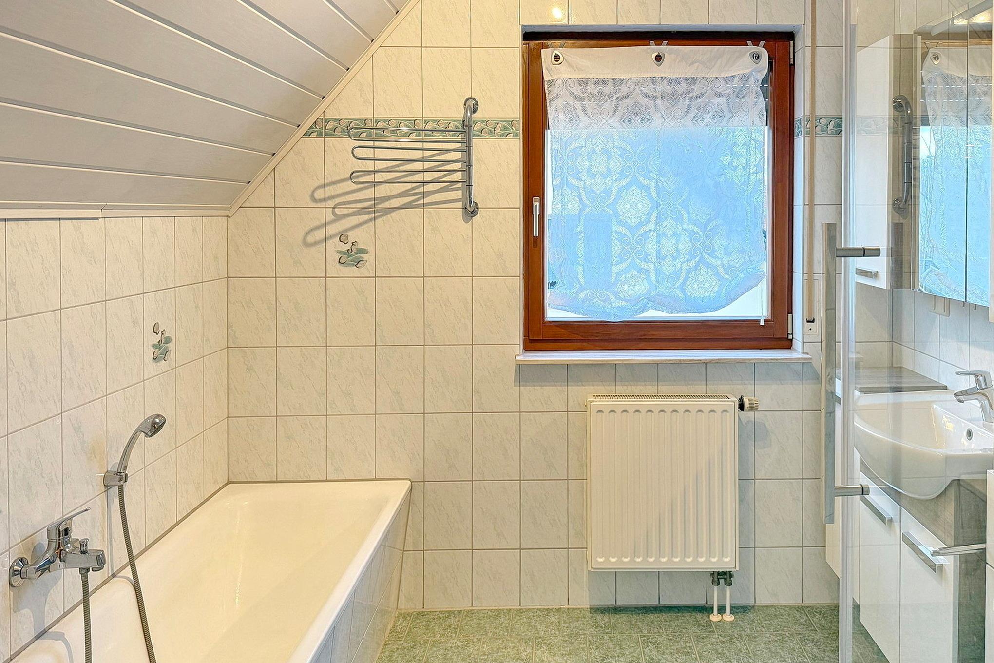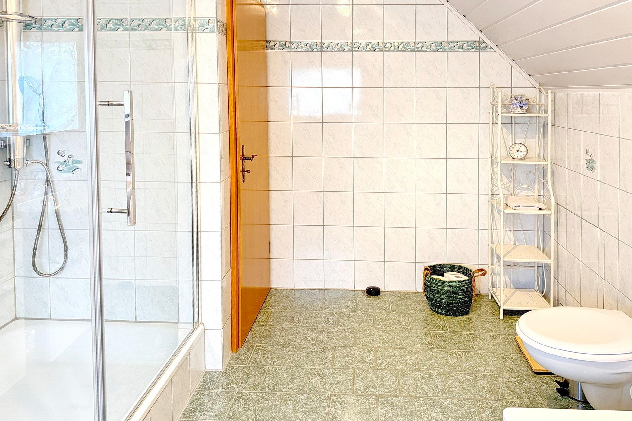 Badeværelse med bruser og badekar