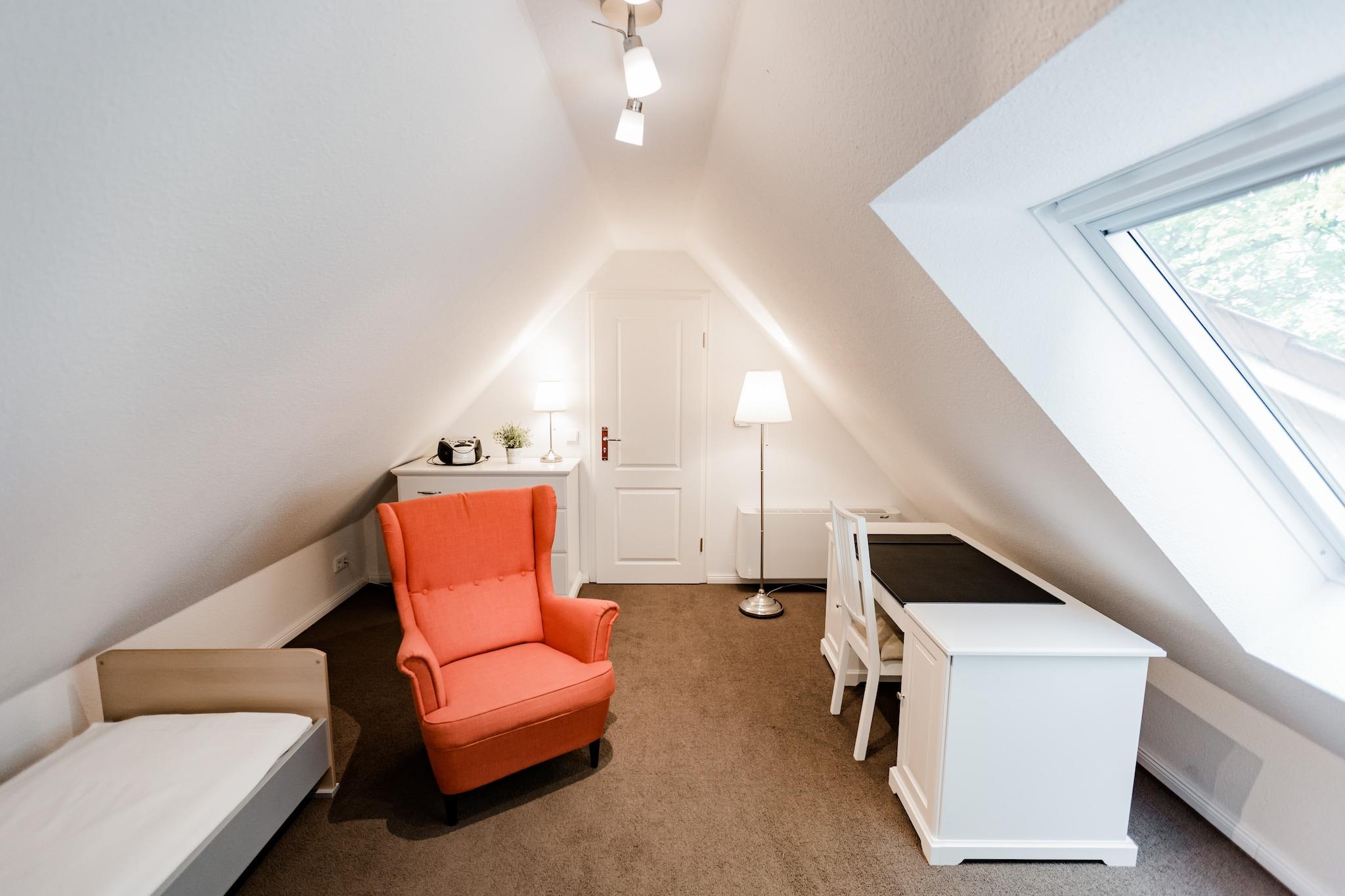 Gemt i den naturskønne landsby Lübberstorf tilbyder denne 4-værelses ferielejlighed et roligt tilflugtssted på landet nær hansestaden Wismar. Herregårdens lejlighed på første sal er omgivet af 10.000 m² frodig have og har en hyggelig stue/spisestue med pejs, aircondition og et fuldt udstyret køkken. Det rummelige badeværelse, master bedroom, to børns soveværelser og en legende hems gør den ideel til familier. Gæsterne kan nyde direkte adgang til Neuklostersees svømmeområde kun 1,5 km væk, og maleriske stier gennem marker og skove. Den charmerende hems, der nås via en stejl trappe, er perfekt for børn at lege på, mens voksne slapper af i det private udendørs opholdsområde. Nærliggende attraktioner omfatter Sternberger Lake District og kystbyer. Væsentlige bekvemmeligheder er inkluderet: gratis Wi-Fi, alle energiomkostninger og parkering. Dette varme og indbydende hjem er en del af en restaureret bondegård og kombinerer rustik charme med moderne bekvemmeligheder, hvilket gør det til en fredelig base for naturelskere.