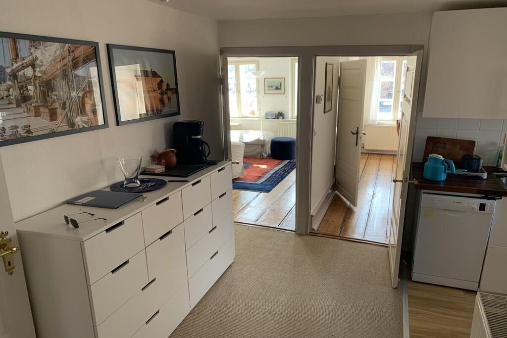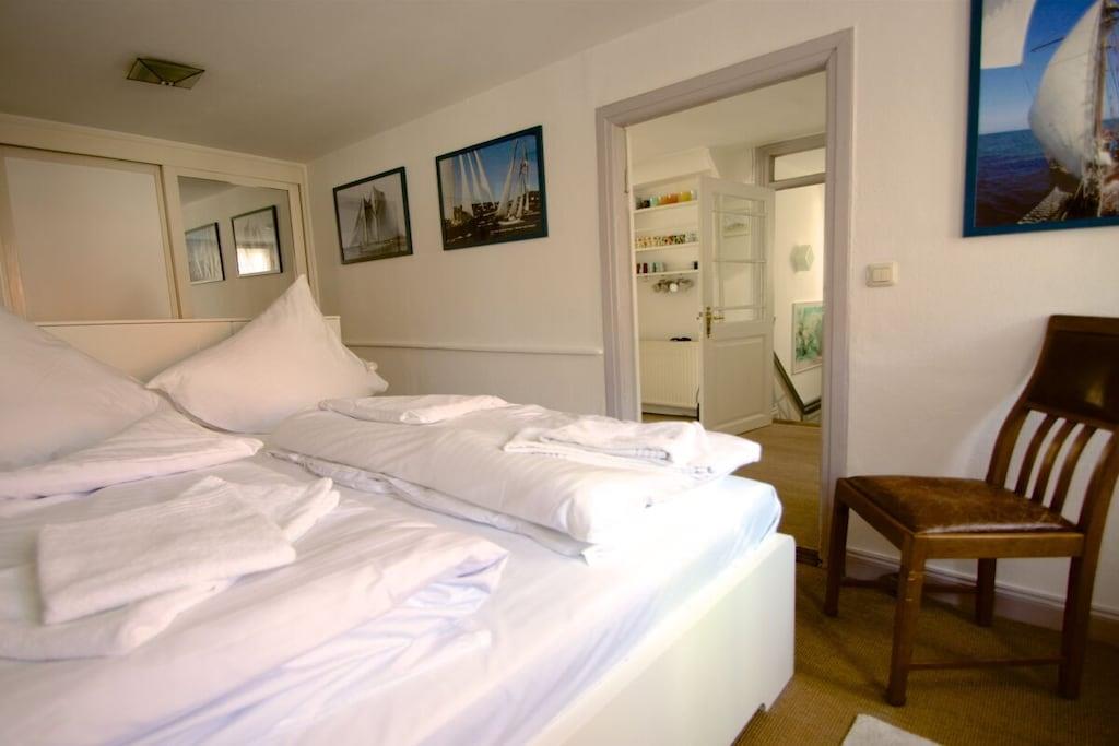In einzigartiger Altstadtlage - direkt im Zentrum von Travemünde, der Vorderreihe – finden Sie die historische Ferienwohnung. Die Wohnung befindet sich im 1. und 2. OG des historisch erwähnten 250 Jahre alten Fachwerkhauses. Sie betreten die Wohnung über einen hellen Flur. Linker Hand befindet sich das moderne in weiß gehaltene Badezimmer und das Schlafzimmer – hell und modern mit hochwertigem Bett und Blick auf den schönen Innenhof! Geradeaus gelangen Sie in den großzügigen Wohn- und Essbereich mit angrenzender offener Küche und Holztreppe zum Schlafzimmer im Spitzboden. Die gesamte Wohnung ist mit hochwertigem Teppich und Fliesen ausgestattet, sowie im Wohn- und Esszimmer mit altem Dielenboden und bietet durch das Fachwerk ein besonderes Wohnumfeld. Die wunderschöne Wohnung ist vollständig renoviert und liebevoll eingerichtet worden. Die Einrichtung ist exklusiv: 32- Flat-TV im Wohnzimmer,32-Zoll-LCD-TV als Zweitfernseher im oberen Schlafzimmer und Designermöbel. Die offene Küche ist mit neuster Technik sowie Geschirrspüler, Ceran-Kochfeld, Umluftbackofen, Mikrowelle, PixiNespresso Kaffeemaschine, Wasserkocher, Toaster, Waffeleisen, Mixer, Saftpresse, Gewürzauswahl etc. ausgestattet. Von fast allen Räumen haben Sie einen wunderbaren Blick auf die schöne Trave. Des Weiteren befindet sich im Innenhof eine voll ausgestattete Terrasse, die zum Verweilen und Träumen einlädt. Die Ferienwohnung bietet einen Dauerstrandkorb bei der Strandkorbvermietung Knoll am Sandstrand von Travemünde, der kostenlos für Sie reserviert ist.