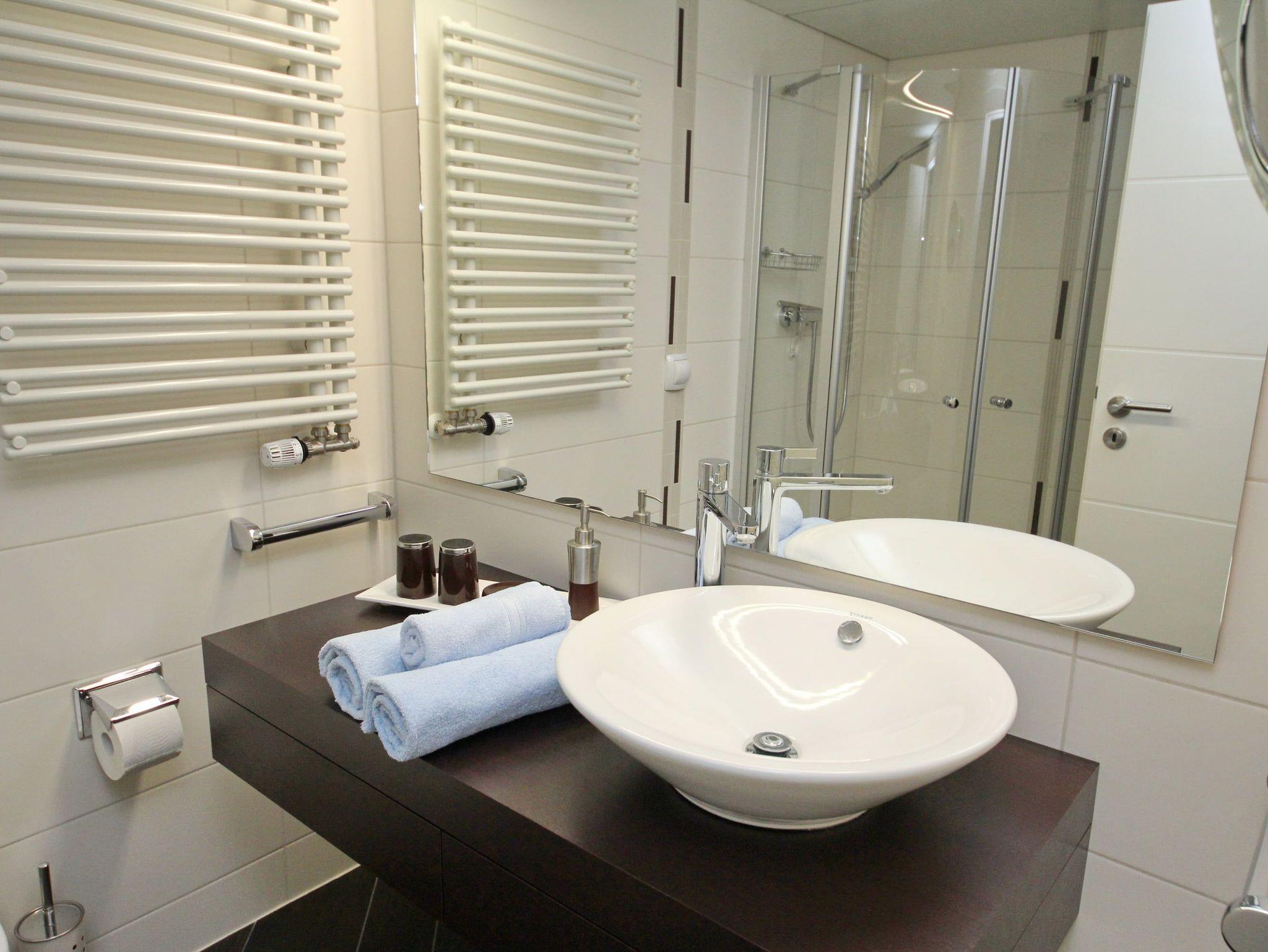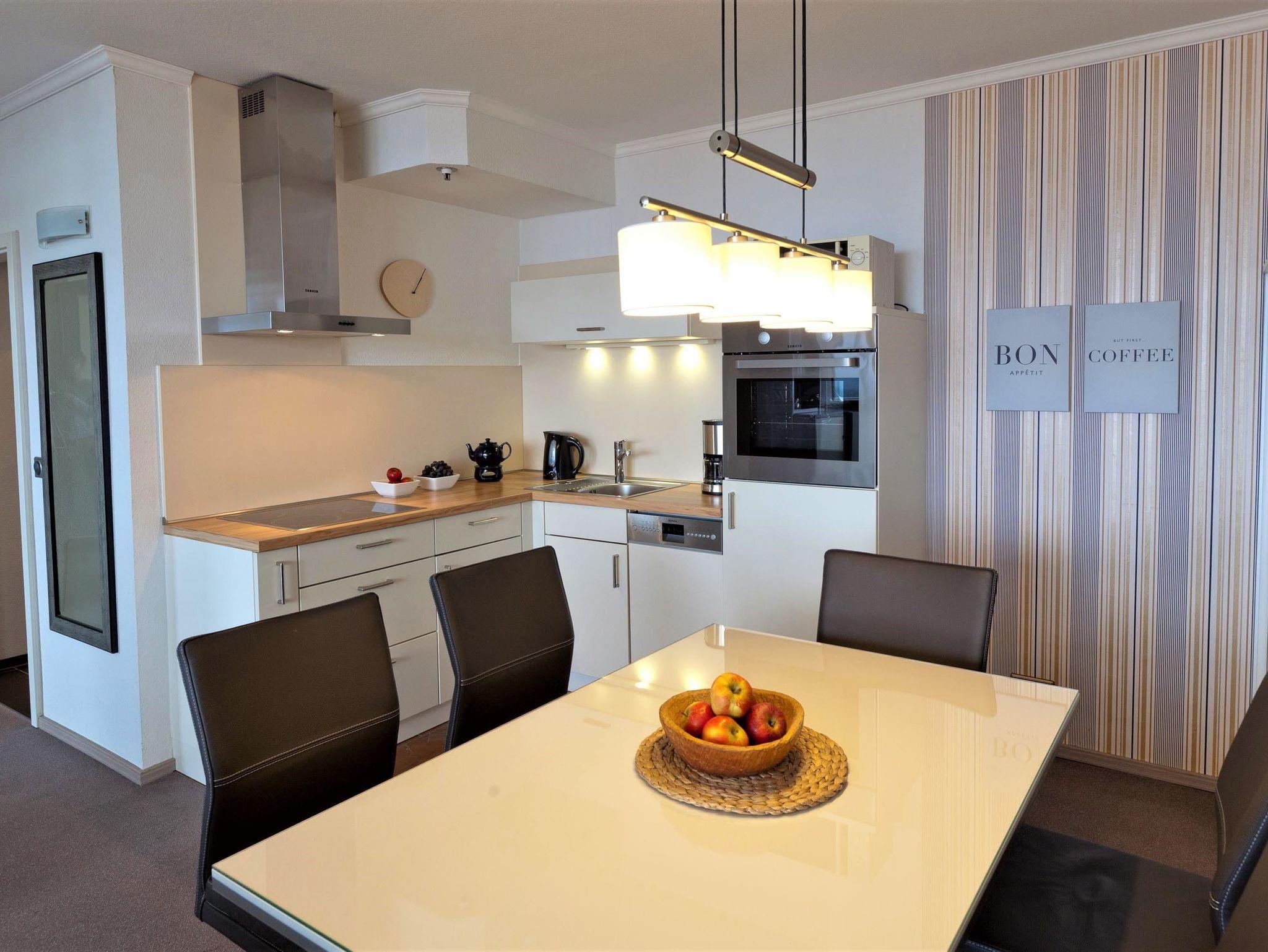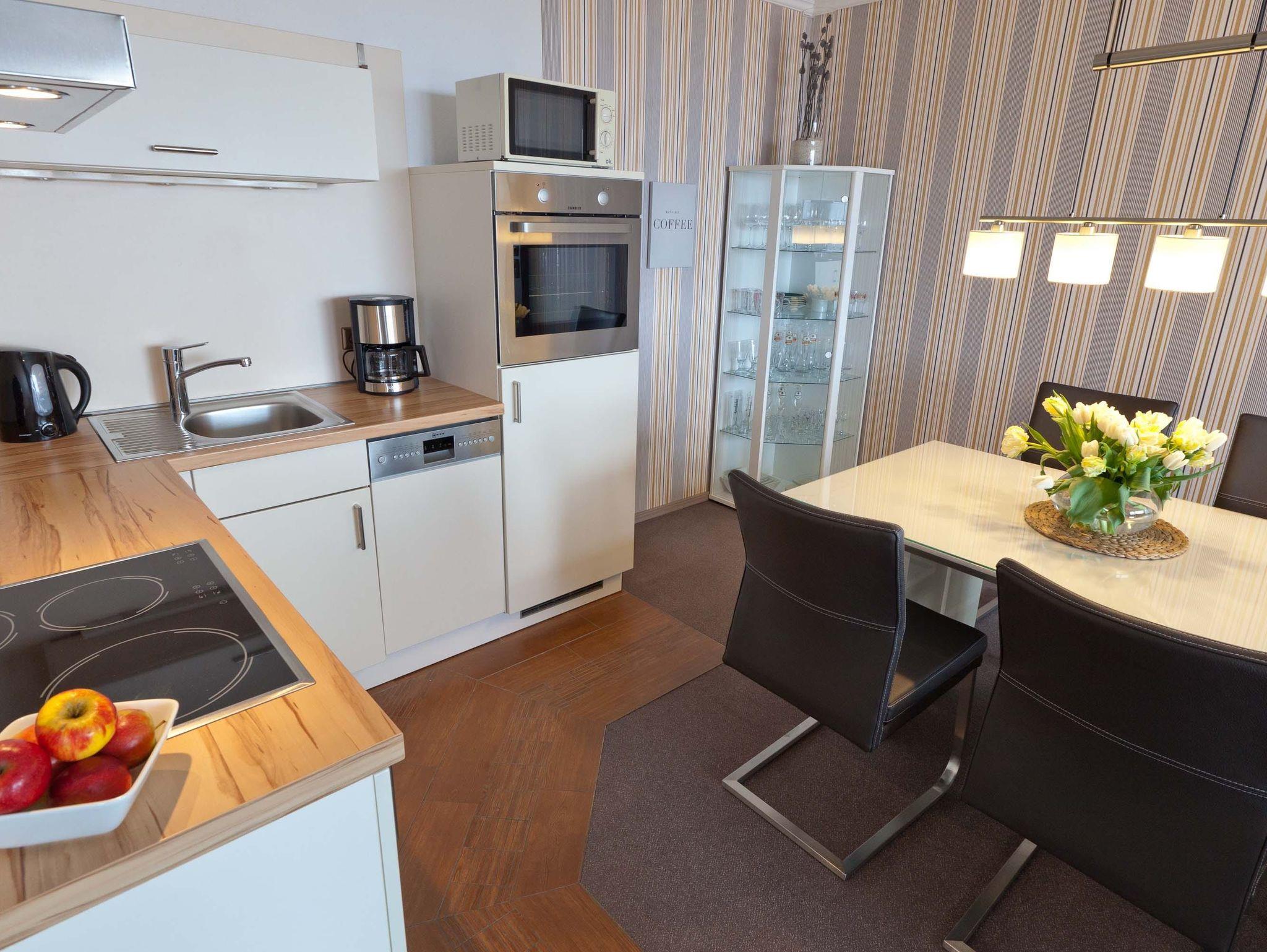Balkon, Küche, Geschirrspüler, Mikrowelle, Duschbad/WC, Fön, Waschmaschine, 1x TV, Stereoanlage, kostenl. W-Lan, Aufzug, inkl. Tiefgaragenstellplatz (Einfahrtshöhe: 1,85 m).