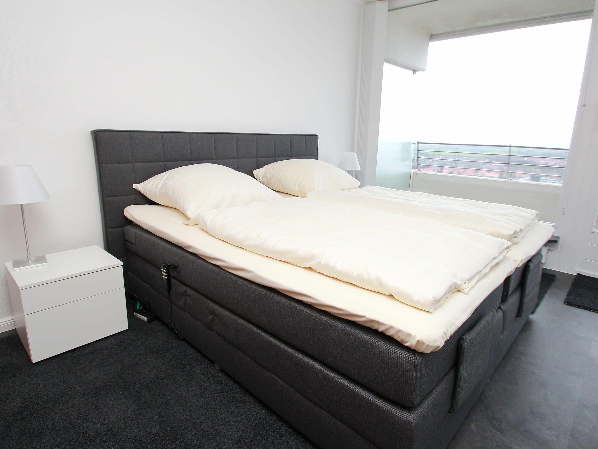 Dieses komfortable Appartement in bevorzugter Lage hat eine ausgesprochen geschmackvolle Einrichtung und lädt zu einem schönen Urlaubsaufenthalt ein. Im Wohnraum stehen eine gemütliche Ledercouchgarnitur mit Tisch, eine Anrichte und eine Essecke neben der Küche. Das Schlafzimmer ist ausgestattet mit einem bequemen Boxspringbett (2x 90 cm x 200 cm) mit elektrisch verstellbarem Kopf- und Fußteil und einem großzügigen Kleiderschrank. Das moderne Duschbad geht vom Flur ab. Vom Wohn- und Schlafraum erreichen Sie den großen Balkon. Hier haben Sie einen traumhaften Ausblick auf die Strandpromenade, weit über die Lübecker Bucht bis hin zum Ostsee-Horizont.