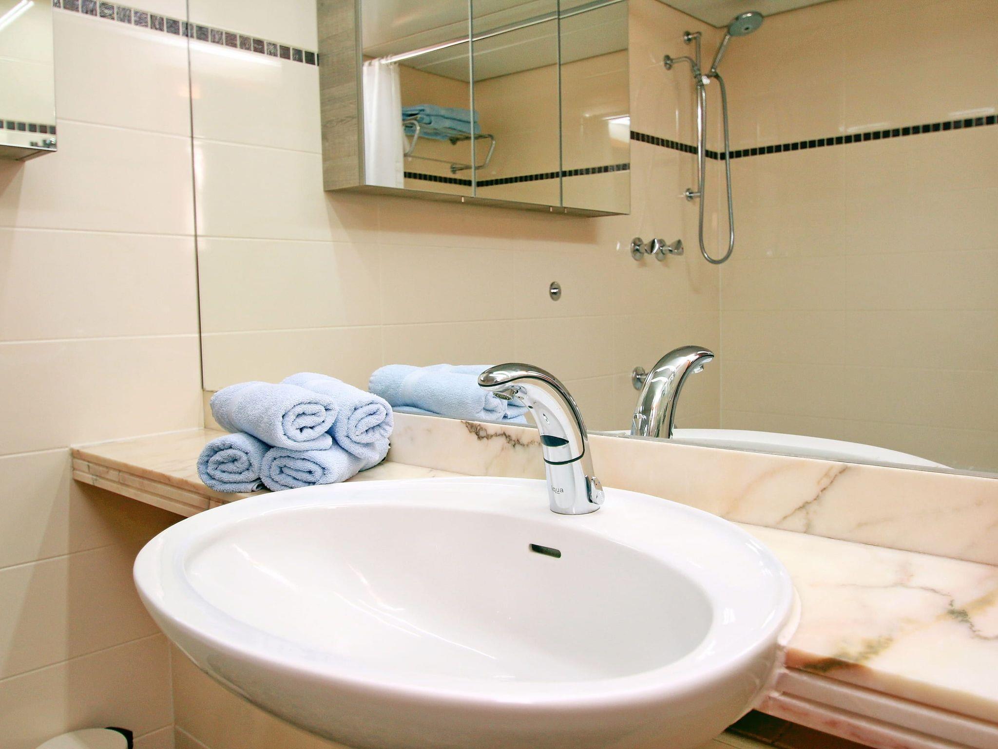 Wellnessangebote wie Schwimmbad, Sauna, Beauty sowie Restaurants und Cafés sind im Haus.