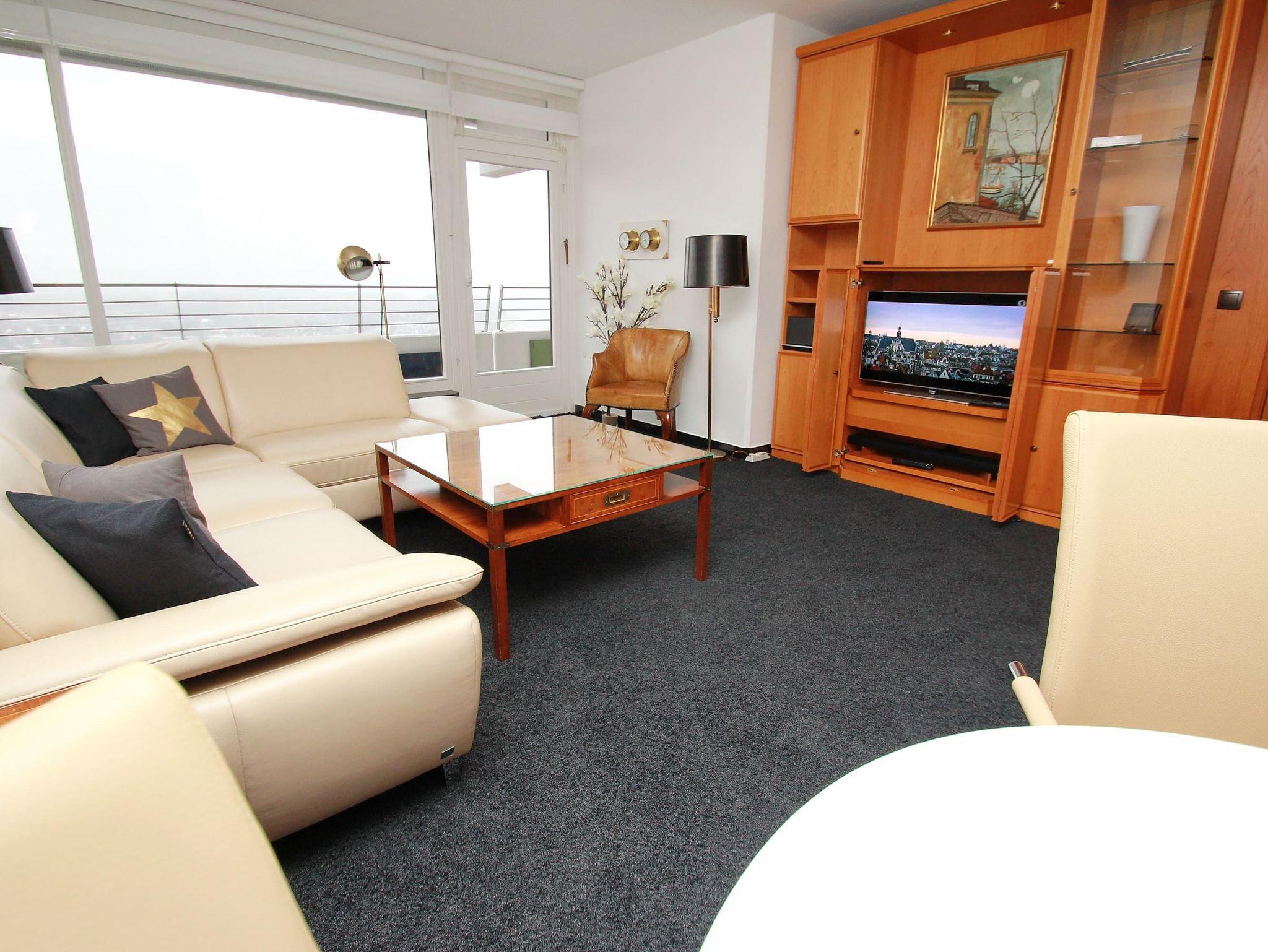 Dieses komfortable Appartement in bevorzugter Lage hat eine ausgesprochen geschmackvolle Einrichtung und lädt zu einem schönen Urlaubsaufenthalt an der Ostsee ein. Im Wohnraum stehen eine gemütliche Ledercouch mit Tisch, eine Anrichte und eine Essecke neben der hochwertigen Einbauküche. Das Schlafzimmer ist ausgestattet mit einem bequemen Boxspringbett (2x 90 cm x 200 cm) mit elektrisch verstellbarem Kopf- und Fußteil und einem Kleiderschrank. Das moderne Bad geht vom Flur ab. Von Wohn- und Schlafraum erreichen sie den großen Balkon. Hier haben Sie einen traumhaften Ausblick auf die Strandpromenade, weit über die Lübecker Bucht bis hin zum Ostsee-Horizont.