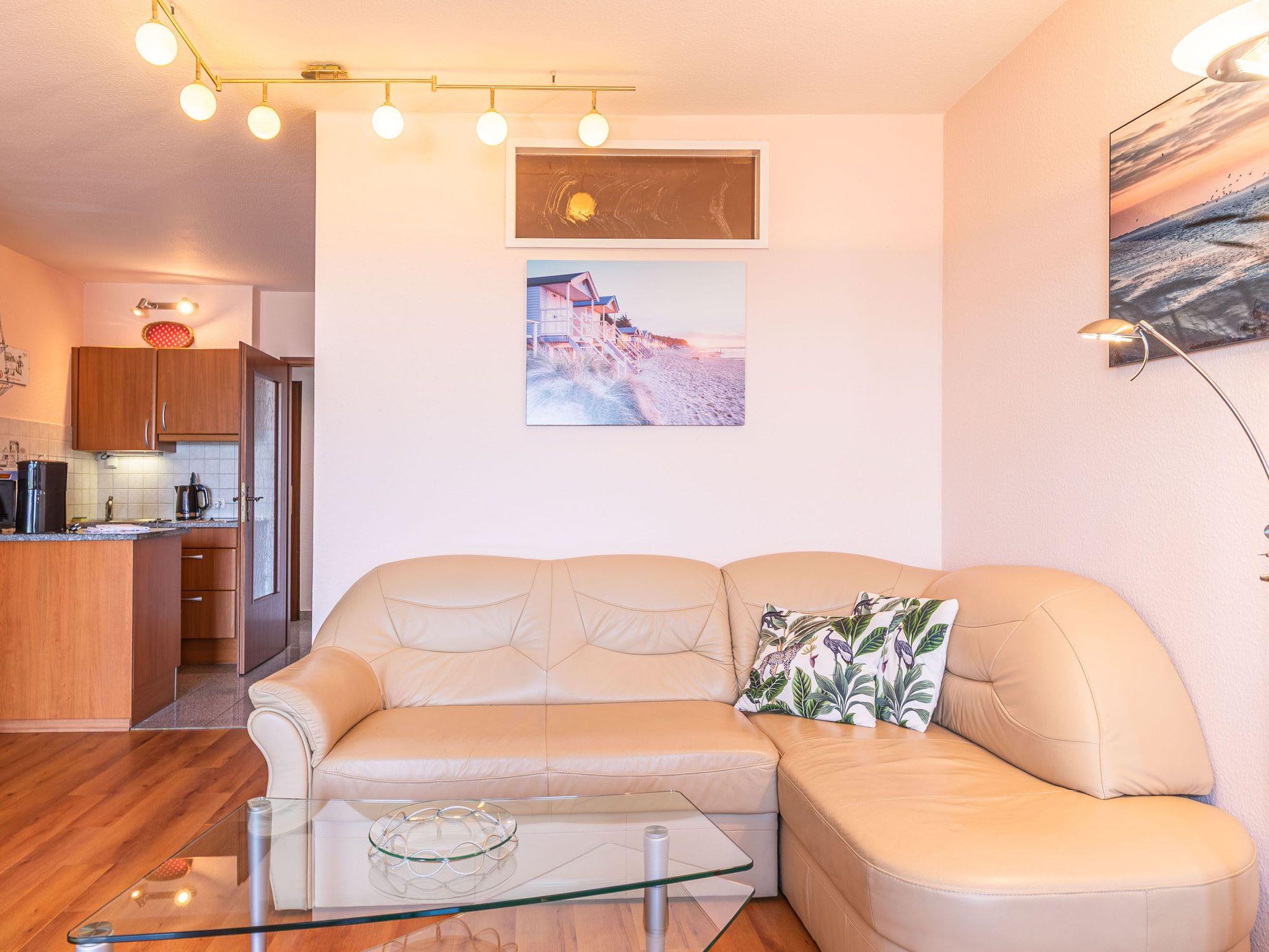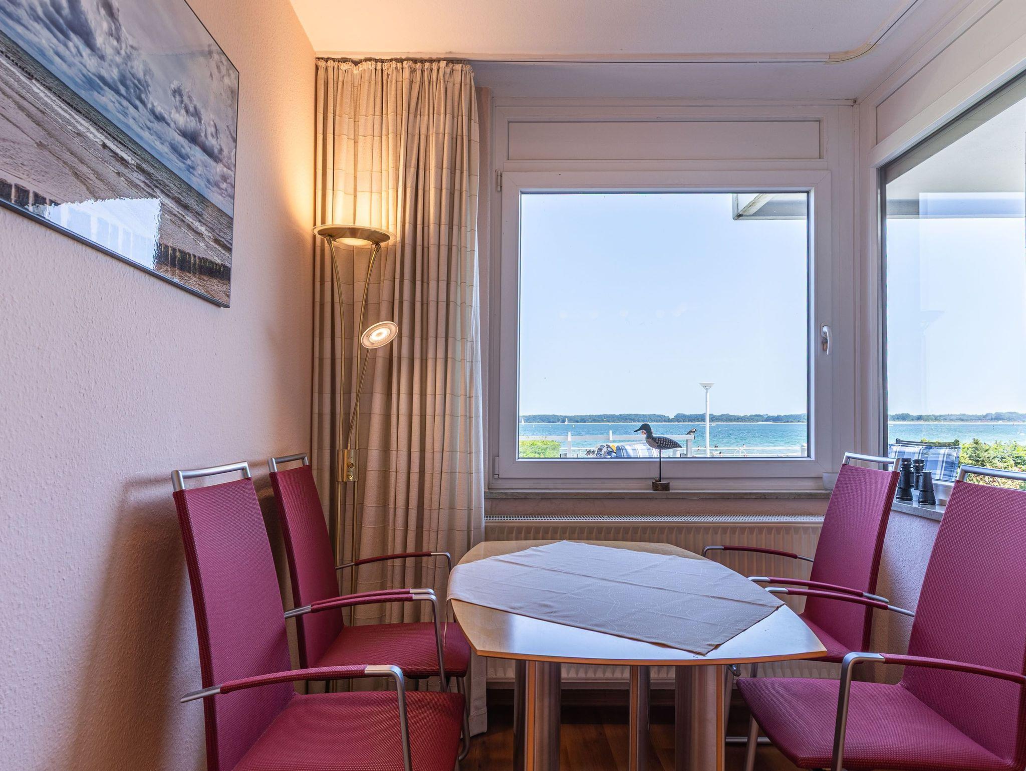 Das Meer hören und sehen: Dieses Appartement besticht mit seiner Lage, in erster Reihe direkt an der Strandpromenade und mit herrlichem Meerblick. Von der Essecke-an der großen Fensterfront-genießen Sie schon morgens beim Frühstücken den herrlichen Blick auf den Strand und die Ostsee. Erleben Sie das großartige Panorama der Lübecker-Bucht, direkt von Ihrer Terrasse vis-à-vis der Strandpromenade. Die große See-Terrasse ist mit einem Strandkorb, gemütlichen Liegen und einer Sitzgruppe ausgestattet. Der Travemünder-Sandstrand ist nur einen Steinwurf entfernt. Ihr Appartement verfügt über ein modernes Duschbad, eine voll ausgestattete Küchenzeile, ein separates Schlafzimmer mit zwei Einzelbetten sowie ein Schrankbett im Wohnbereich. Im Wohnzimmer finden Sie eine bequeme Ledercouch sowie die Essecke an der Fensterfront vor. Vom Wohnbereich gelangen Sie ebenfalls auf die große Panorama-Terrasse. Die Fenster im Wohnbereich können alle durch elektrische-Rollladen verschlossen werden. Genießen Sie Ihren Urlaub in Erster Reihe!