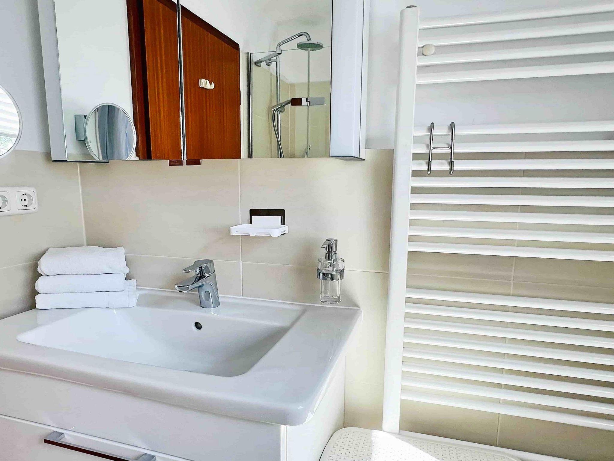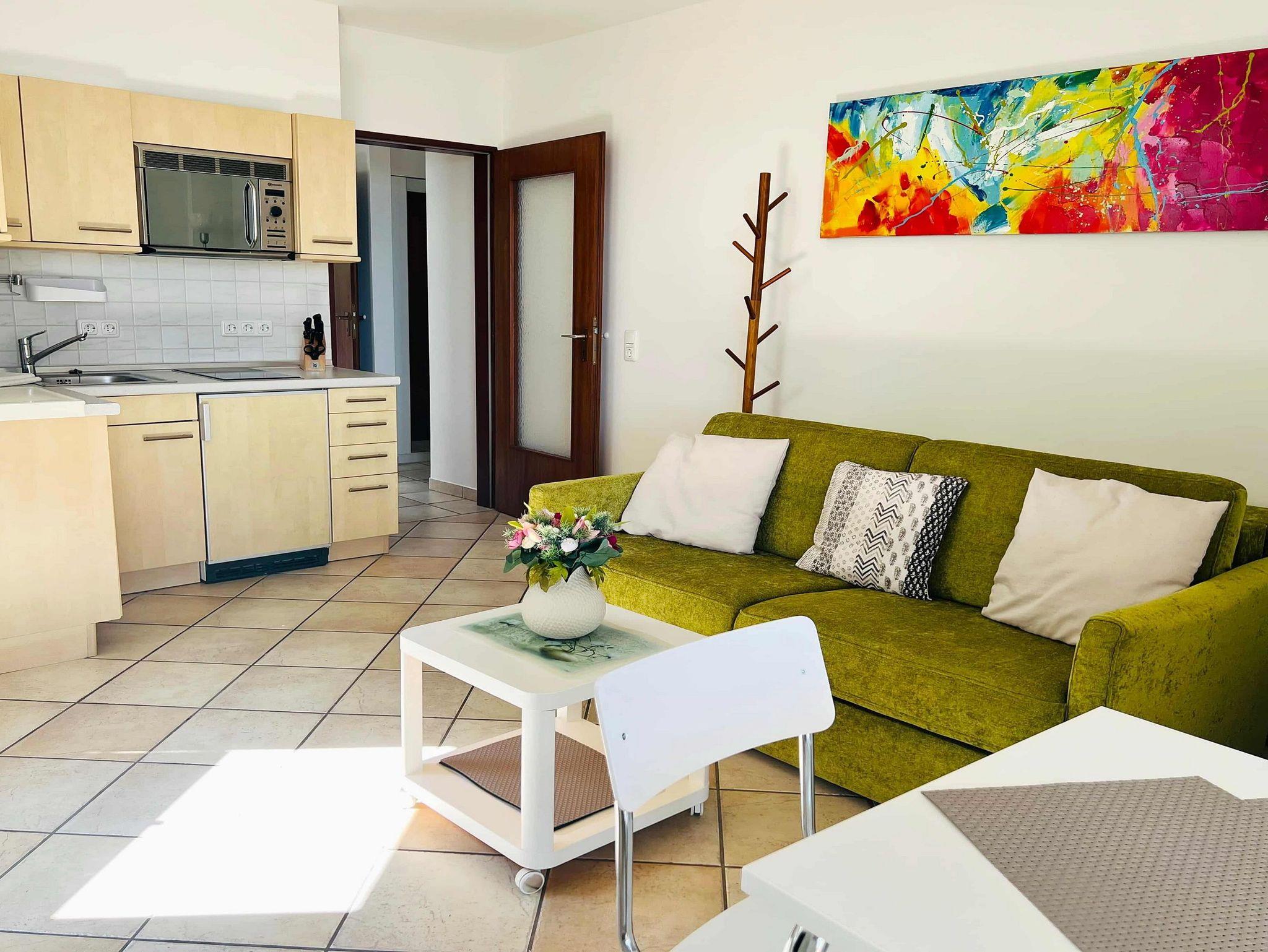 Zwei Balkone, Küche, Mikrowelle, Duschbad/WC, Fön, 1x TV, kostenl. W-Lan, ohne KFZ-Stellplatz.