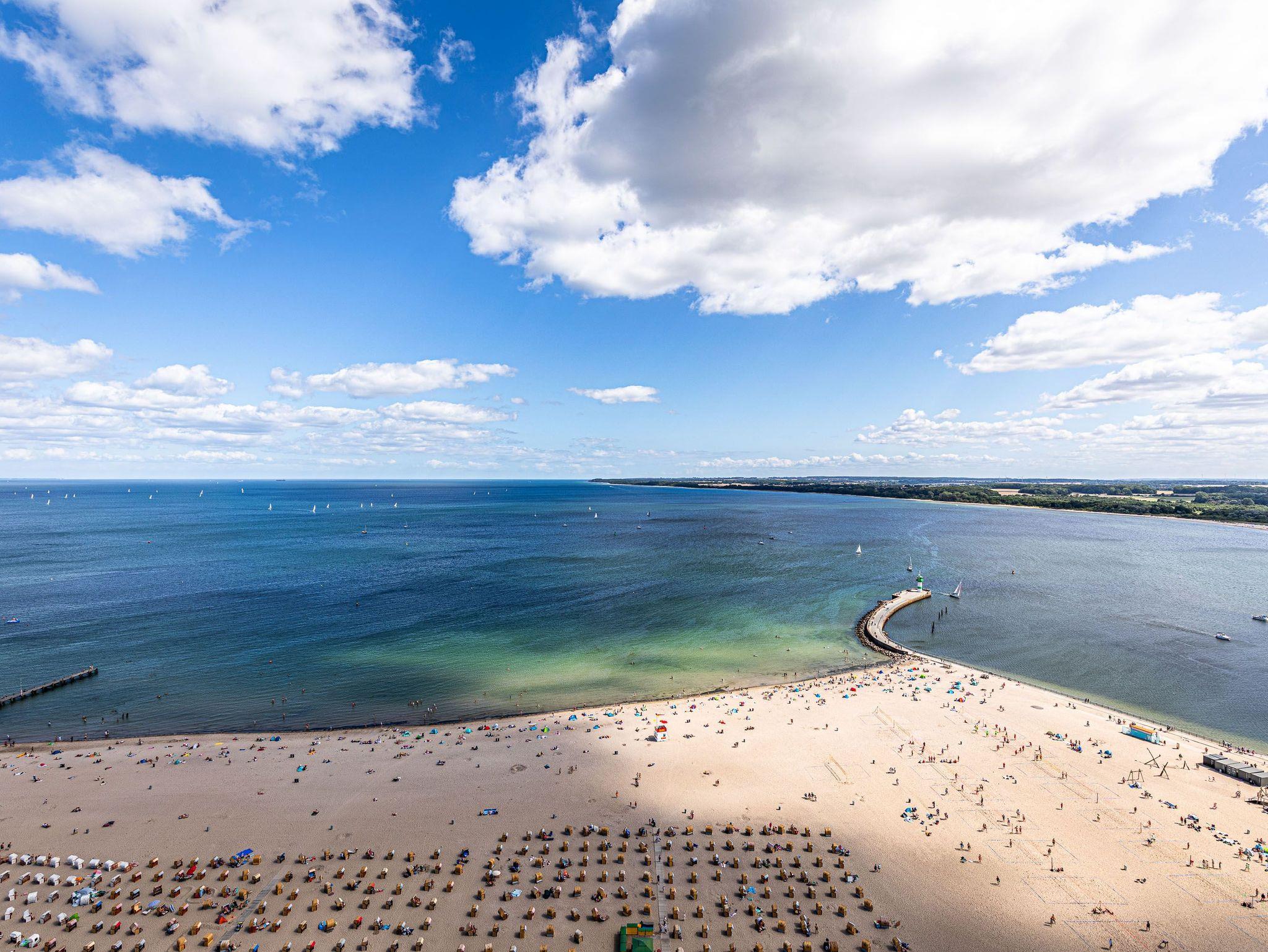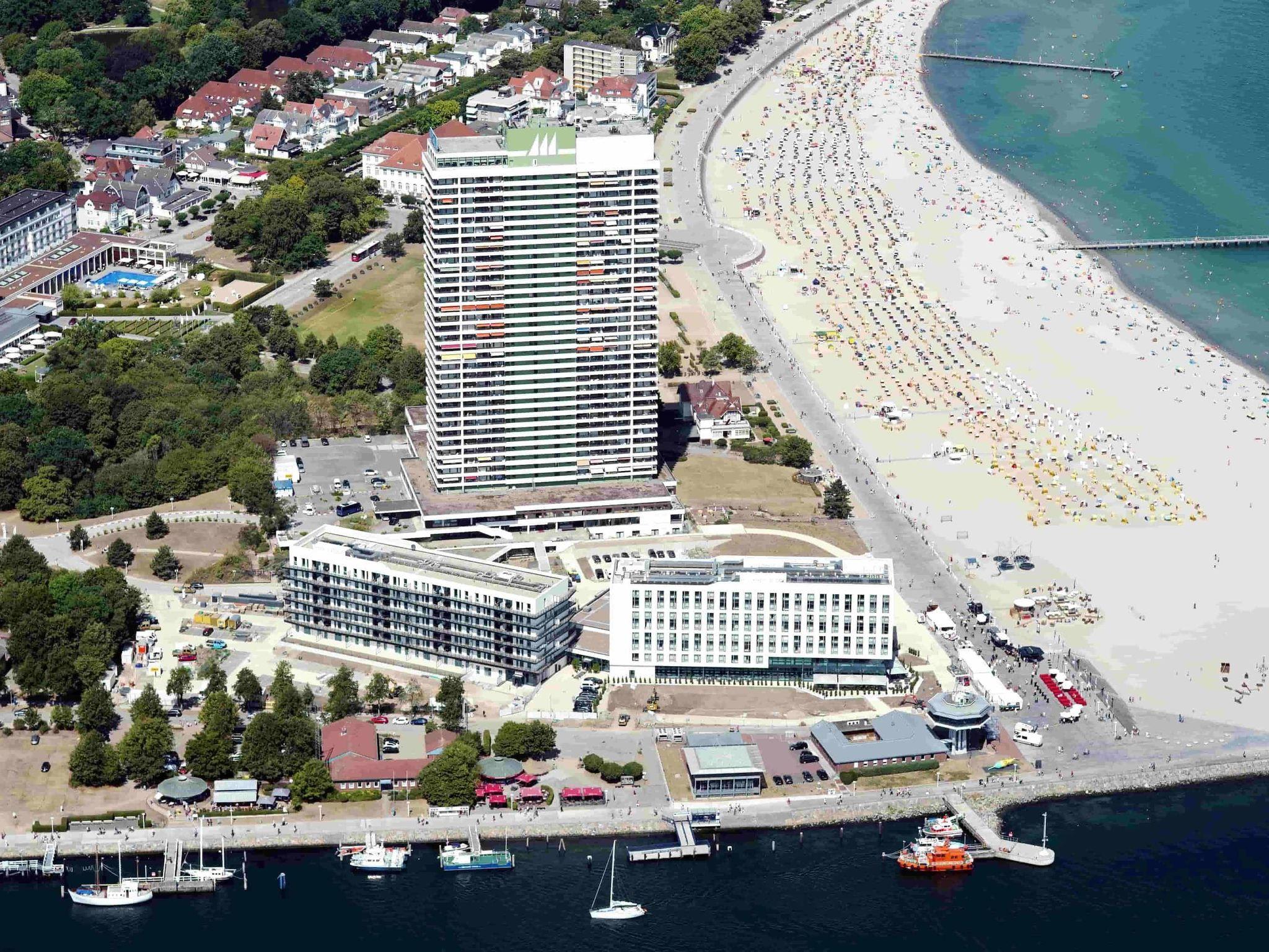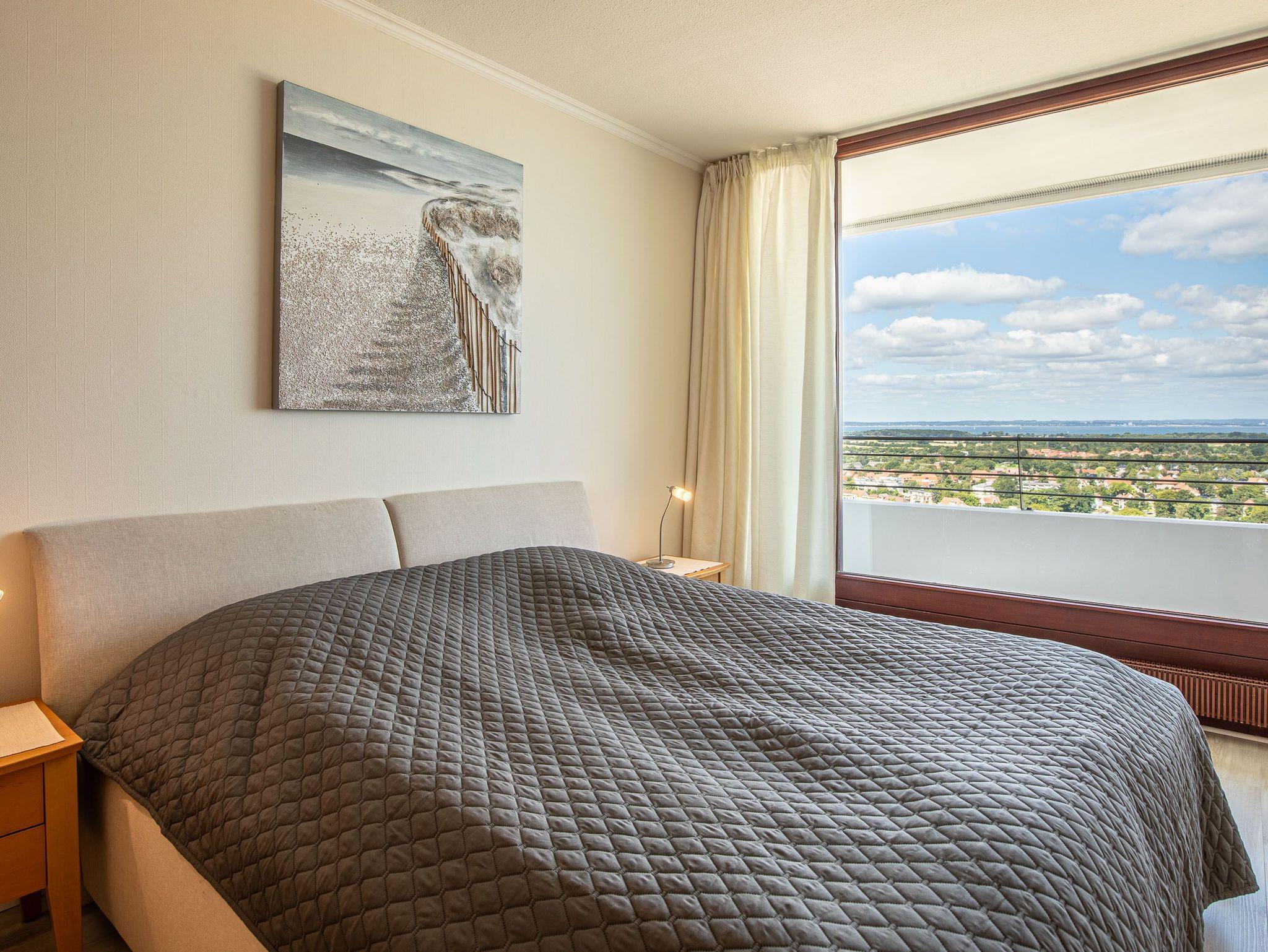 Highlight dieser komfortablen 3-Zimmer Ferienwohnung ist die traumhafte Lage mit Blick über den Strand und Ostsee, sowie auf ein- und ausfahrendem Schiffsverkehr. Der großzügige Wohnraum besteht aus einer hellen Wohnlandschaft und einer bequemen Essecke und einer offenen Einbauküche. Im ersten Schlafzimmer steht ein Doppelbett (2x 90 cm x 200 cm) und ein großer Einbauschrank. Im weiteren Schlafzimmer steht ebenfalls ein Doppelbett (2x 90 cm x 200 cm) auch mit Kleiderschrank. Das moderne Duschbad erreichen Sie vom Flur. Den überdimensionalen Eckbalkon zum Strand und Ostsee erreichen Sie von allen Wohnräumen, um den tollen Panoramablick zu genießen.