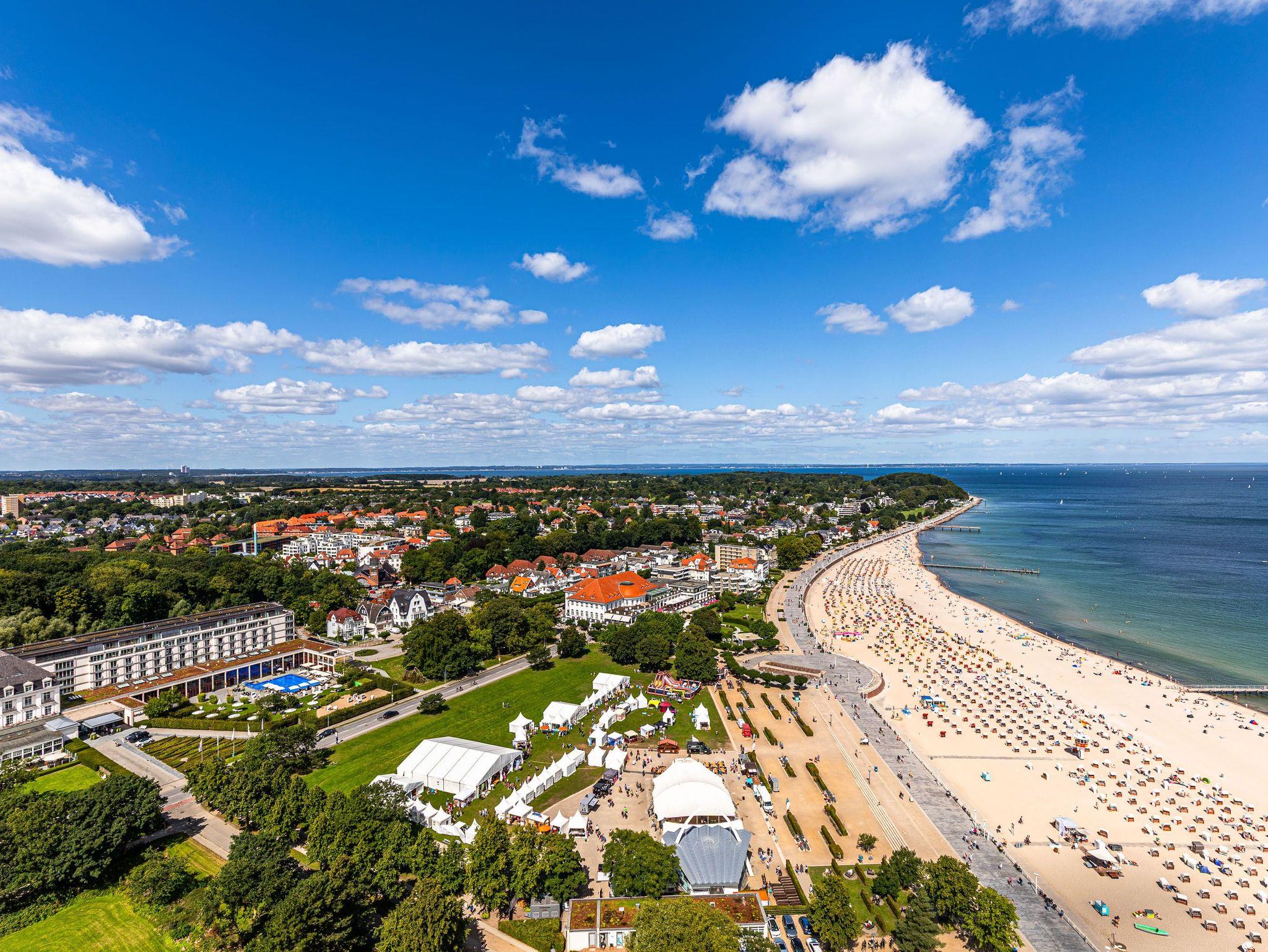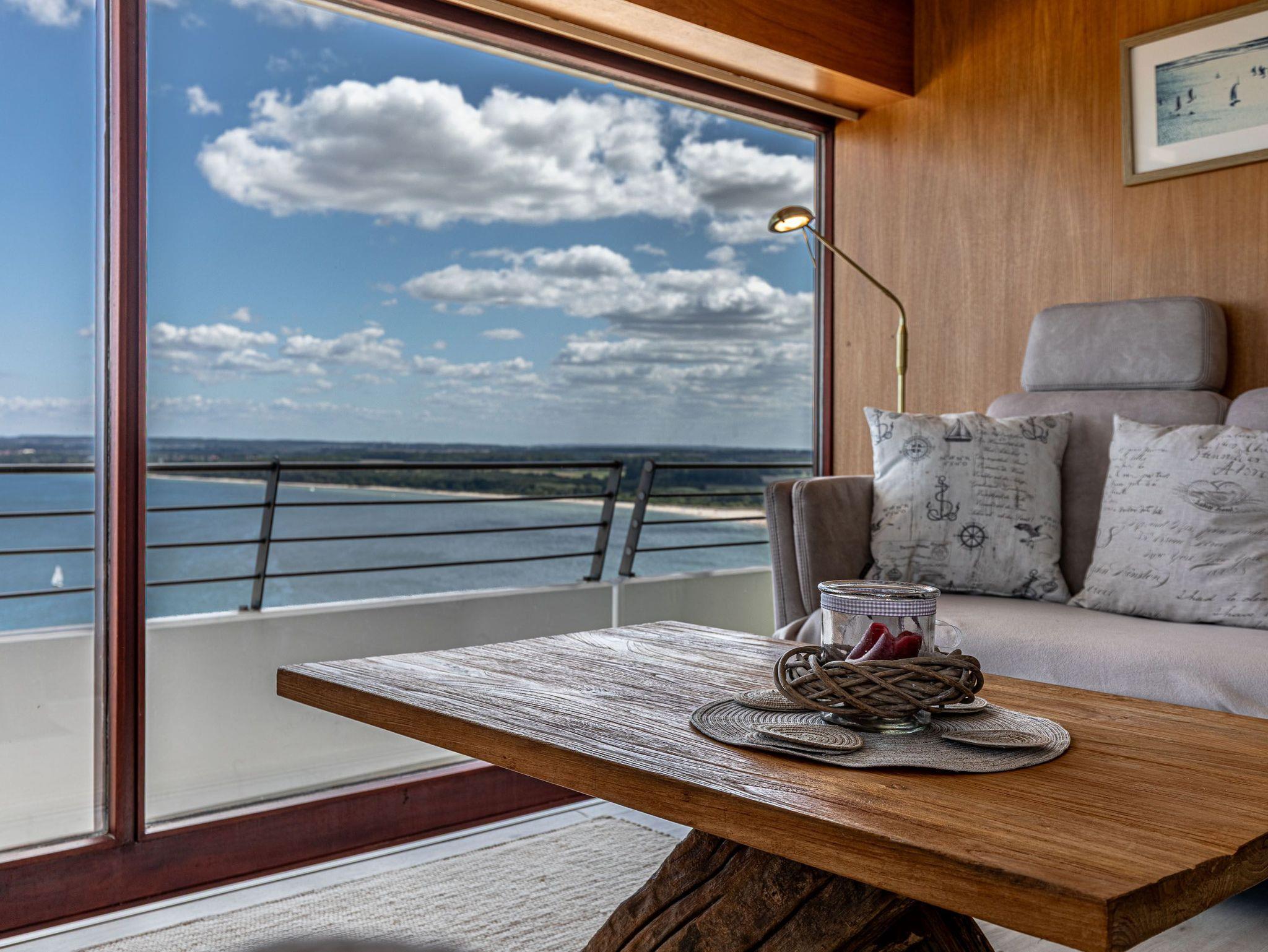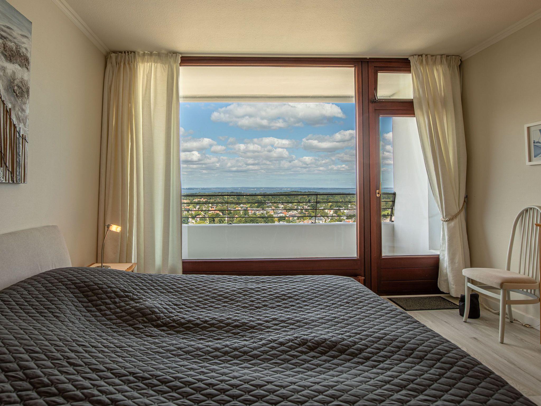 Highlight dieser komfortablen 3-Zimmer Ferienwohnung ist die traumhafte Lage mit Blick über den Strand und Ostsee, sowie auf ein- und ausfahrendem Schiffsverkehr. Der großzügige Wohnraum besteht aus einer hellen Wohnlandschaft und einer bequemen Essecke und einer offenen Einbauküche. Im ersten Schlafzimmer steht ein Doppelbett (2x 90 cm x 200 cm) und ein großer Einbauschrank. Im weiteren Schlafzimmer steht ebenfalls ein Doppelbett (2x 90 cm x 200 cm) auch mit Kleiderschrank. Das moderne Duschbad erreichen Sie vom Flur. Den überdimensionalen Eckbalkon zum Strand und Ostsee erreichen Sie von allen Wohnräumen, um den tollen Panoramablick zu genießen.