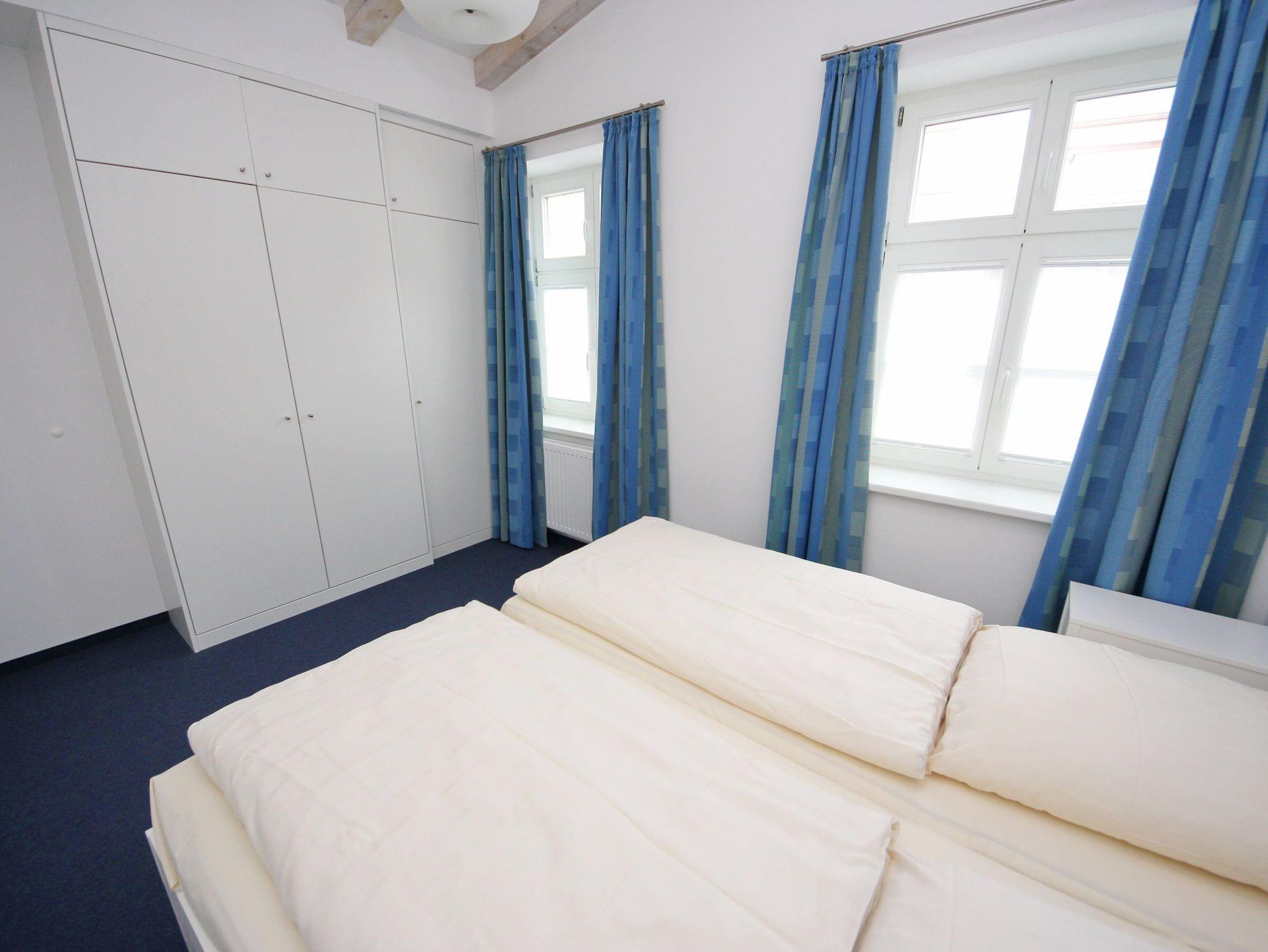 In dieser direkt an der Trave gelegenen und komplett sanierten Ferienwohnung wird Ihr Aufenthalt zu einem absolut tollen Erlebnis. Der helle Wohnraum, in den auch die moderne, offene Küchenzeile mit Esstresen integriert ist, ist sehr geschmackvoll mit einer bequemen Couch mit Tisch und einem Sessel eingerichtet. Vom Wohnzimmer erreichen Sie durch eine Schiebetür ein kleines, gemütliches Zimmer, das mit einer Sitz-/Schlafcouch (180 cm x 200 cm) und Einbauschränken ausgestattet ist. Im Schlafzimmer, das vom Flur abgeht, stehen ein Doppelbett (2x 90 cm x 200 cm) und ein großzügiger Kleiderschrank. Ebenfalls gelangen Sie vom Flur in das schöne Duschbad. Von der sonnigen Dachterrasse, die Sie vom Wohnbereich erreichen, genießen Sie die frische Seeluft und können aus direkter Nähe die Schiffe beobachten. Aktuelle Livebilder vom Ausblick dieses Feriendomizils sehen Sie auf den Webcams 3 und 4. Ein Bäcker befindet sich im Erdgeschoss.