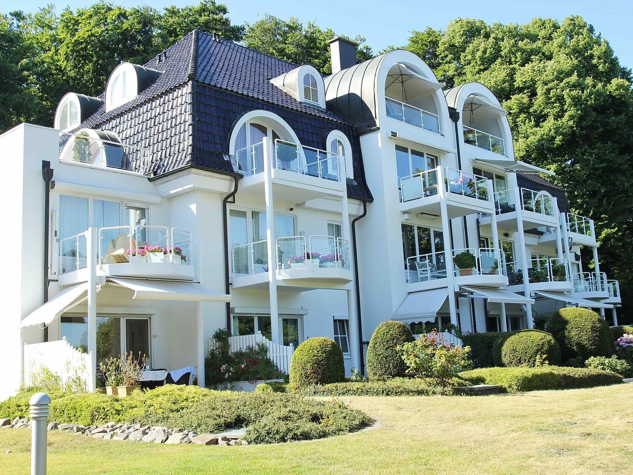 Diese komfortable 2-Zimmer-Wohnung liegt direkt am Naturschutzgebiet Brodtener Steilufer in bester Wohnlage für einen herrlichen Urlaub. Im Wohnraum, mit Zugang zur Terrasse, befinden sich eine komfortable Sitz-/Schlafcouch (160 cm x 200 cm) mit zwei Sesseln und einem Tisch sowie eine schöne Essecke neben der offenen Einbauküche. Das helle Schlafzimmer verfügt über ein bequemes Doppelbett (160 cm x 200 cm) und einen Kleiderschrank. Das marmorierte Duschbad geht vom Flur ab. In dieser Ferienwohnung werden Sie sich von Anfang an wohlfühlen. Auf der gepflegten Terrasse genießen Sie die Sonne und haben einen traumhaften Blick auf die Ostsee mit Schiffsverkehr.