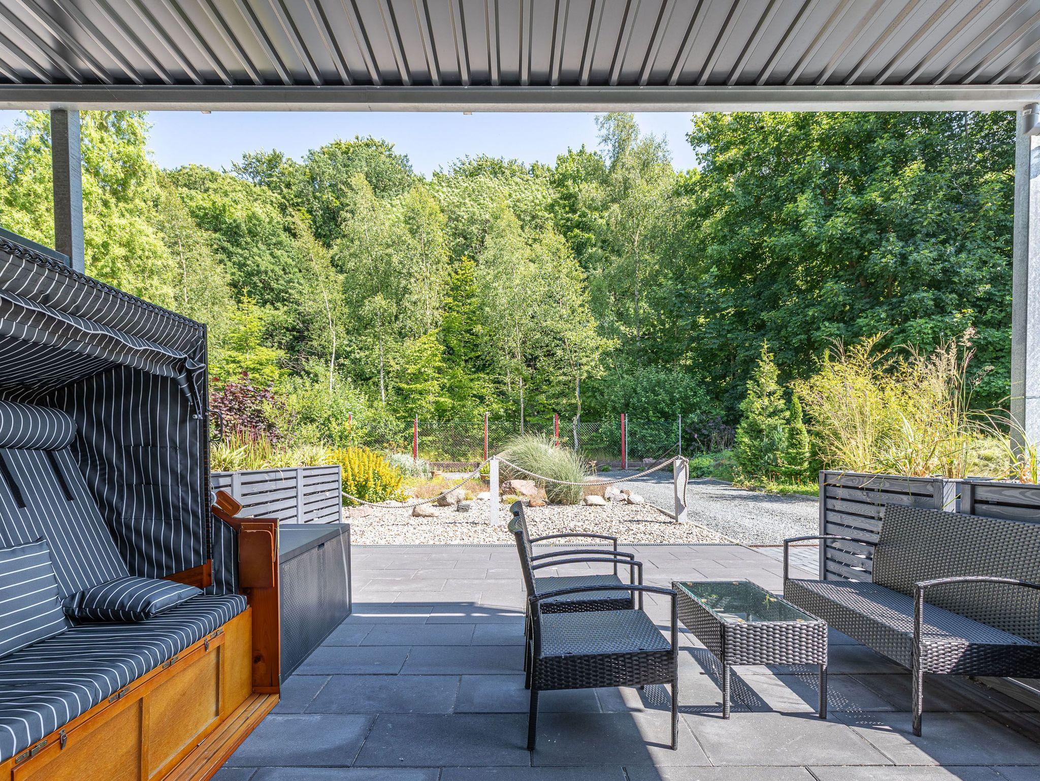 Terrasse, Fußbodenheizung, Küchenzeile, 2 Schlafzimmer, Geschirrspüler, 2xBäder (1x Duschbad/WC, 1x Vollbad/WC), Fön, TV, Strandkorb auf der Terrasse, kostenl. W-Lan, inkl. PKW-Außenstellplatz vor dem Haus, Wallbox auf dem Grundstück (gegen Gebühr).