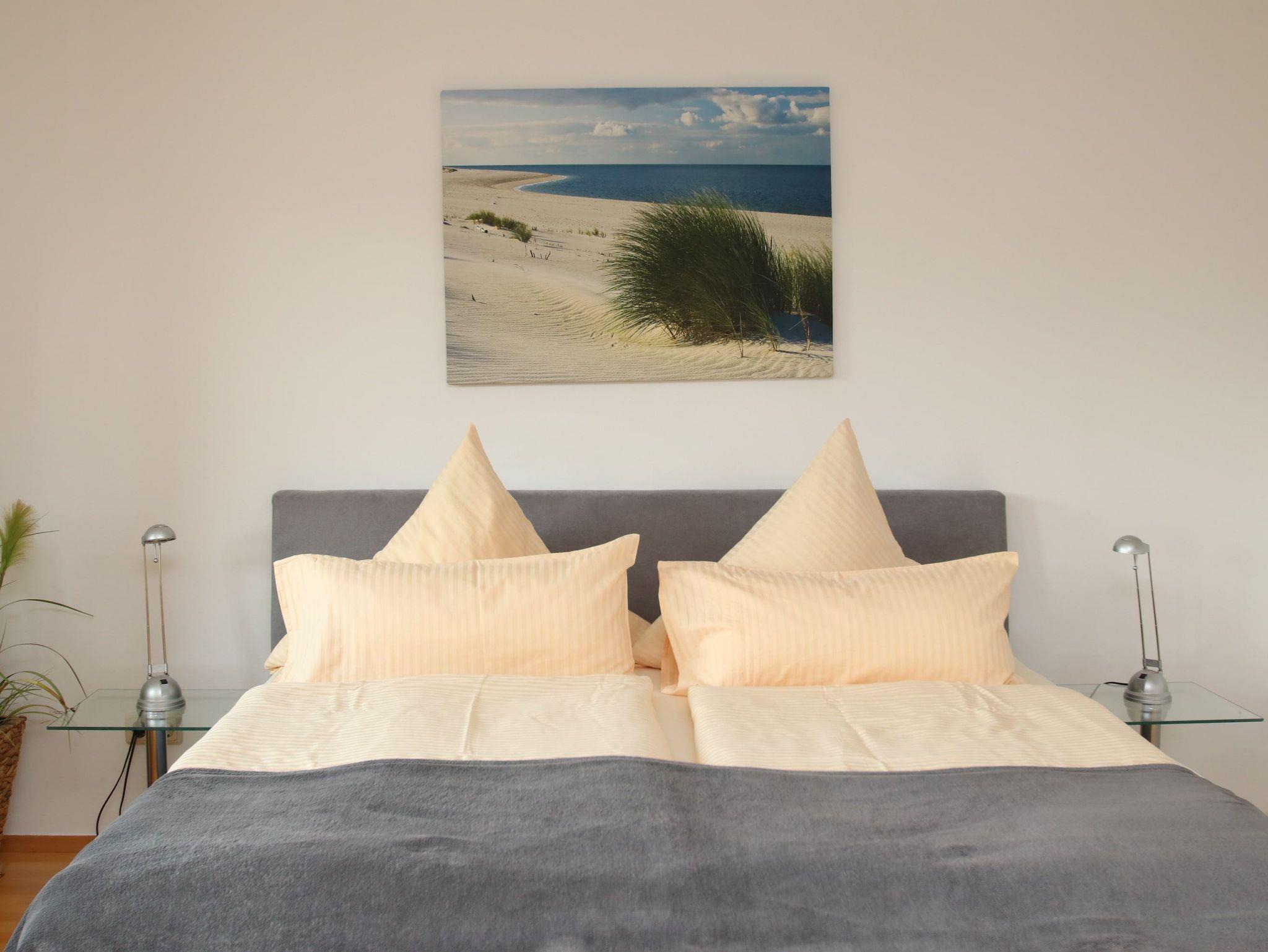 Diese strandnahe, modern eingerichtete Wohnung verfügt über viele praktische Ausstattungsmerkmale, die den Urlaubsaufenthalt für die ganze Familie so angenehm wie möglich machen. Im behaglichen Wohnzimmer stehen eine gemütliche, zweiteilige Sitzgarnitur mit Tisch und eine Essecke mit Anrichte. Im großen Schlafzimmer erwarten Sie ein bequemes Doppelbett (2x 90 cm x 200 cm) und ein Einbaukleiderschrank. Im weiteren Zimmer befinden sich ein Einzelbett (100 cm x 200 cm), das sich als Zusatzbett erweitern lässt, ein Kleiderschrank sowie eine kleine Sitzgruppe. Alle Räumlichkeiten, sowie die Küche, das Bad als auch das separate WC, gehen vom Wohnungsflur ab. In dieser in warmen Holztönen und farblich sehr schönen abgestimmten Wohneinheit fühlen Sie sich das ganze Jahr über wohl. Den sonnigen Süd-West-Balkon erreichen Sie vom Wohnzimmer oder Sie verweilen auf der hauseigenen Liegewiese.