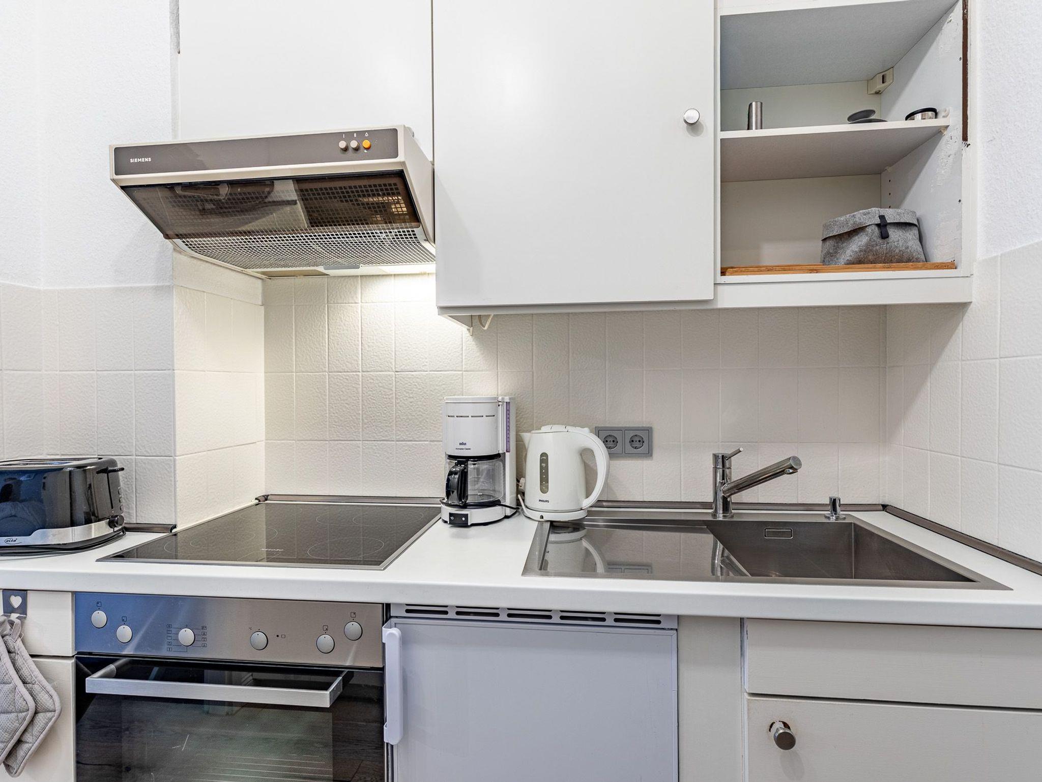 Balkon, Küchenzeile, Duschbad/WC, (Waschmaschine und Trockner im Haus), TV, Radio, Aufzug, inkl. Tiefgaragenstellplatz (Einfahrtshöhe: 1,85 m).