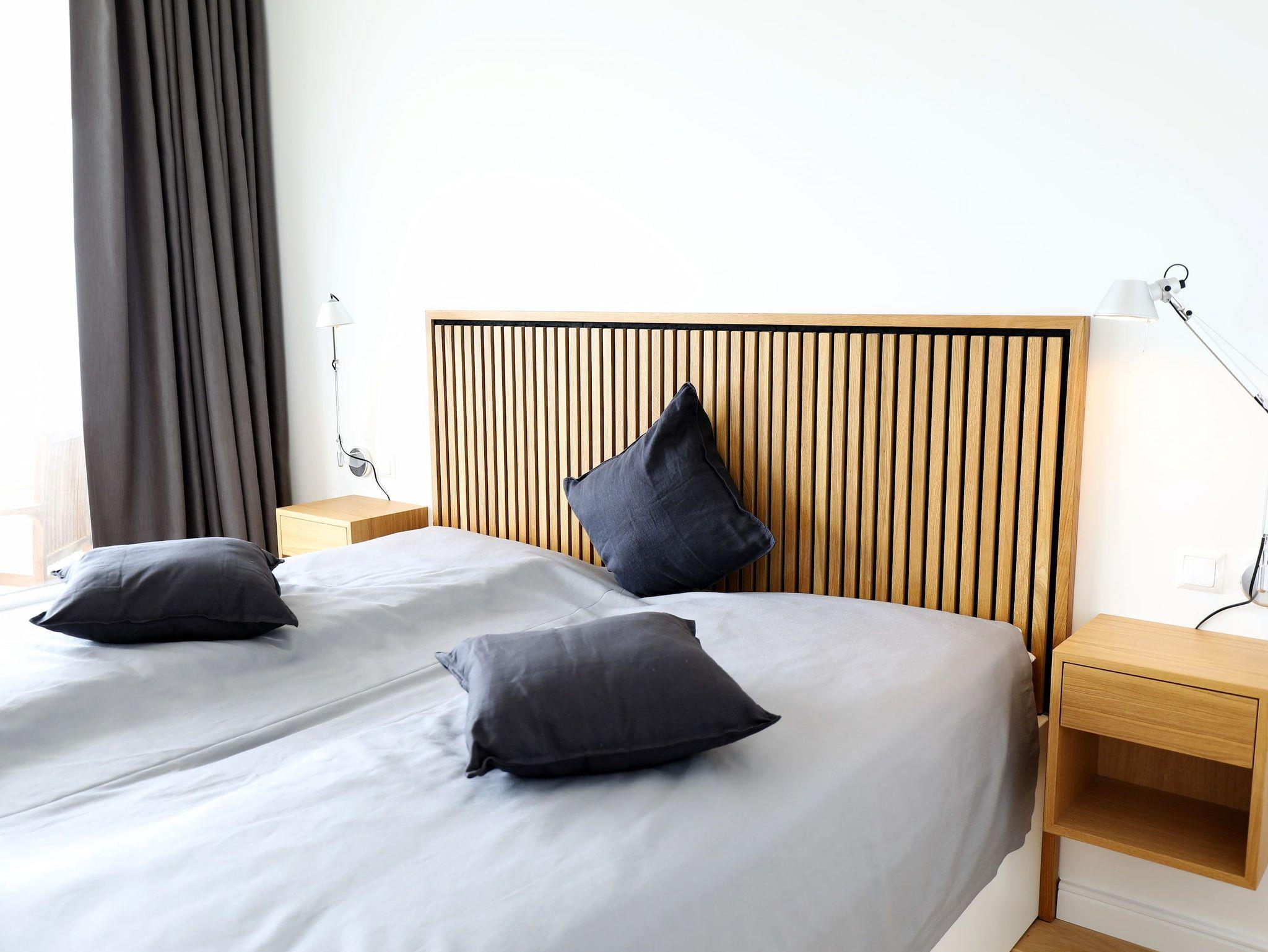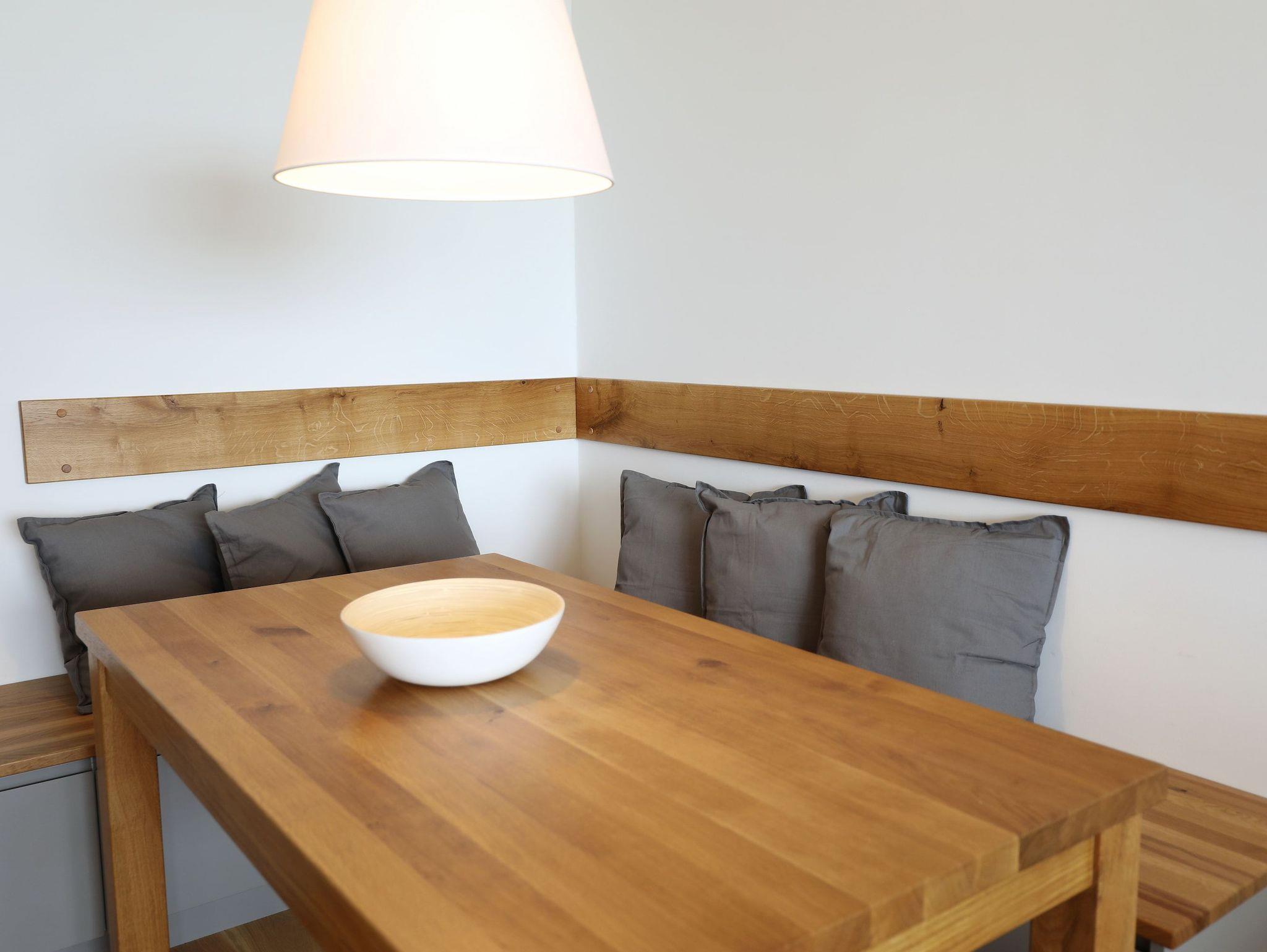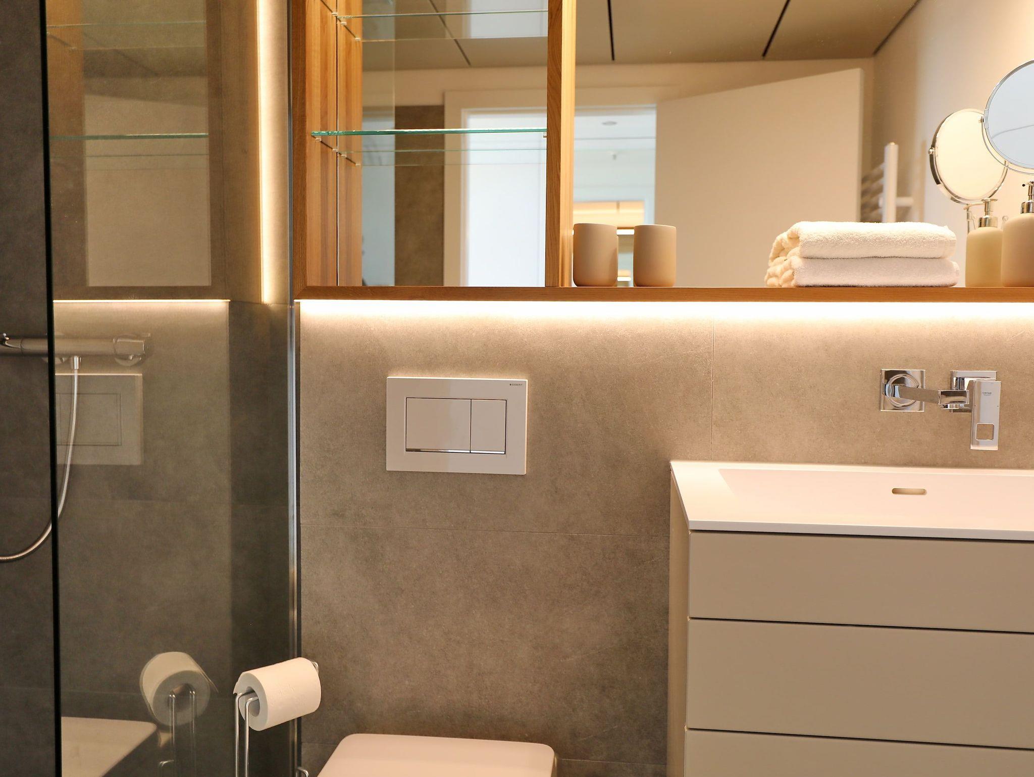 Dieses komfortabel und elegant eingerichtete Design-Appartement ist im Jahr 2023 vollständig saniert worden und bietet Ihnen neben einigen Highlights und einer Einrichtung mit Liebe zum Detail, ein Wohnerlebnis für aller-höchste Ansprüche. Genießen Sie den Atemberaubenden Blick auf die Lübecker-Bucht und den Travemünder-Strand direkt vom Wohnzimmer und vom Schlafzimmer. Das Wohnzimmer besteht aus einer großen gemütlichen Eck-Couchgarnitur in modernen Grautönen und zwei kleinen gläsernen Tischchen sowie einem großen Smart-TV. Die offene Küche mit Tresen und indirekter Beleuchtung der Arbeitsfläche ist in das Wohnzimmer intrigiert. In Ihrer Küche ist ein Bora-Abzug in das Kochfeld eingebaut, so dass sie selbst beim kochen den direkten Blick auf die Ostsee genießen können. Der Essbereich befindet sich angrenzend an der Küche und besteht aus einer Eckbank sowie einem Holztisch. In Ihrem Schlafzimmer befindet sich ein gemütliches Boxspringbett (180 cm x 200 cm), ein großer Kleiderschrank und eine kleine Sitzbank. Das komfortable Badezimmer mit der großzügigen ebenerdigen-Dusche erreichen Sie vom Eingangsbereich. Die gesamte Wohnung ist mit edlem Echtholz Eichenparket ausgelegt. Genießen Sie auf Ihrem großen Balkon den herrlichen Blick auf die Ostsee und den Strand. Diese exklusive Ferienwohnung ist in hellen Farbentönen und modernen grau-Akzenten eingerichtet und lässt für Ihren erholsamen Ostseeurlaub in Travemünde keinerlei Wünsche offen.
