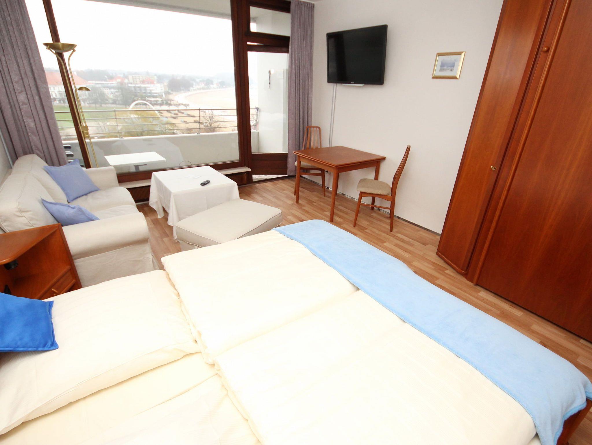 Sie wollen ausspannen und sich vom Alltag erholen? Dieses freundliche und zentral gelegene Appartement hat die besten Voraussetzungen dafür. Hier können Sie aus nächster Nähe das Strandleben genießen und das beschauliche Spiel der Segelboote im Wind beobachten. Im Wohnraum befinden sich ein bequemes Doppelbett (2x 90 cm x 200 cm), ein Sofa mit dazugehörigem Hocker, ein Tisch sowie ein großer Kleiderschrank. Des Weiteren ist der Wohnbereich mit einer Essecke ausgestattet. Die Küchenzeile ist im Flur integriert, von dem Sie auch das Bad erreichen. Vom Balkon genießen Sie einen herrlichen Blick auf die Ostsee, den Strand und die Lübecker Bucht.