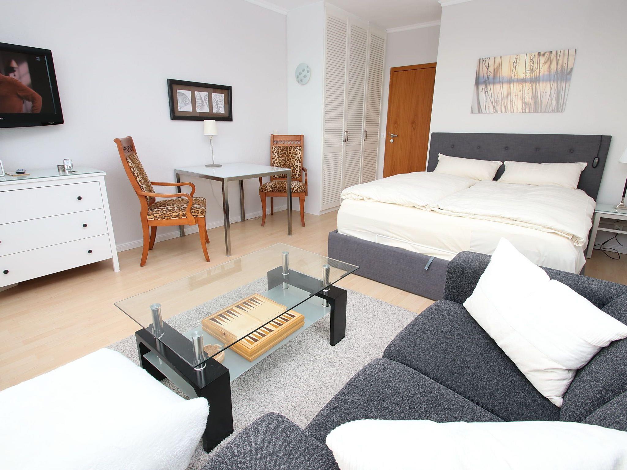 Balkon, Markise, Küchenzeile, Duschbad/WC, Fön, TV, Stereoanlage, Aufzug, inkl. Tiefgaragenstellplatz (Einfahrtshöhe: 1,85 m).