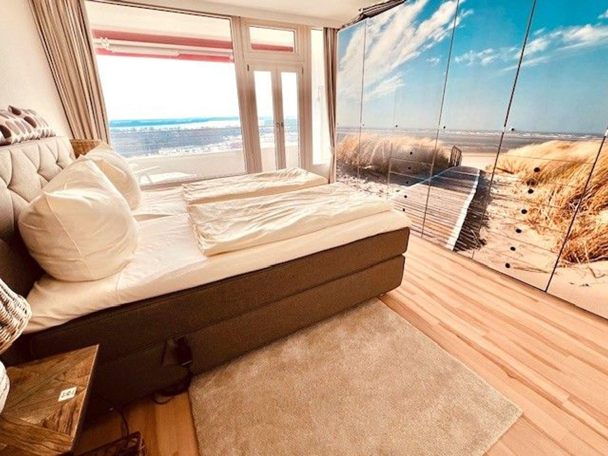 Umlaufende Loggia von ca. 21 m², elektr. Markisen, Küche, Geschirrspüler, Duschbad/WC, Fön, TV, Stereoanlage, kostenl. W-Lan, Aufzug, inkl. Tiefgaragenstellplatz (Einfahrtshöhe: 1,85 m).
