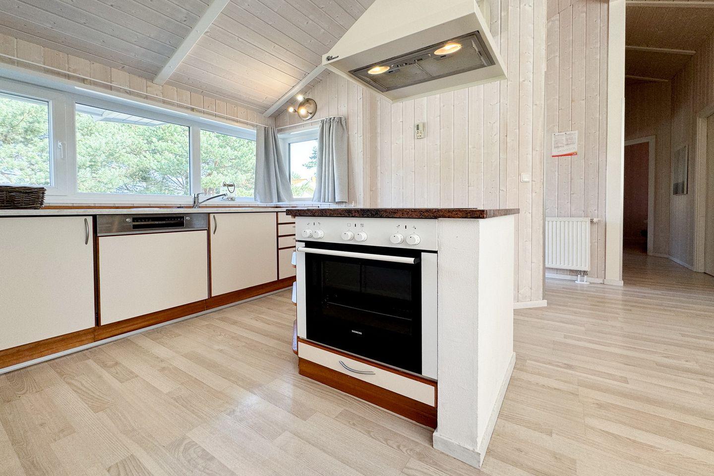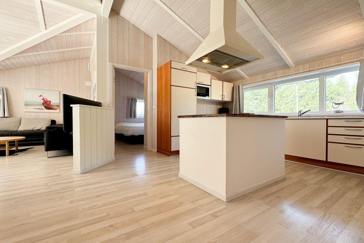 Die Kücheninsel schafft eine lässige Stimmung innerhalb des Ferienhauses. Hier findest Du alles, was Du für die Zu- und Nachbereitung leckerer Mahlzeiten benötigst: