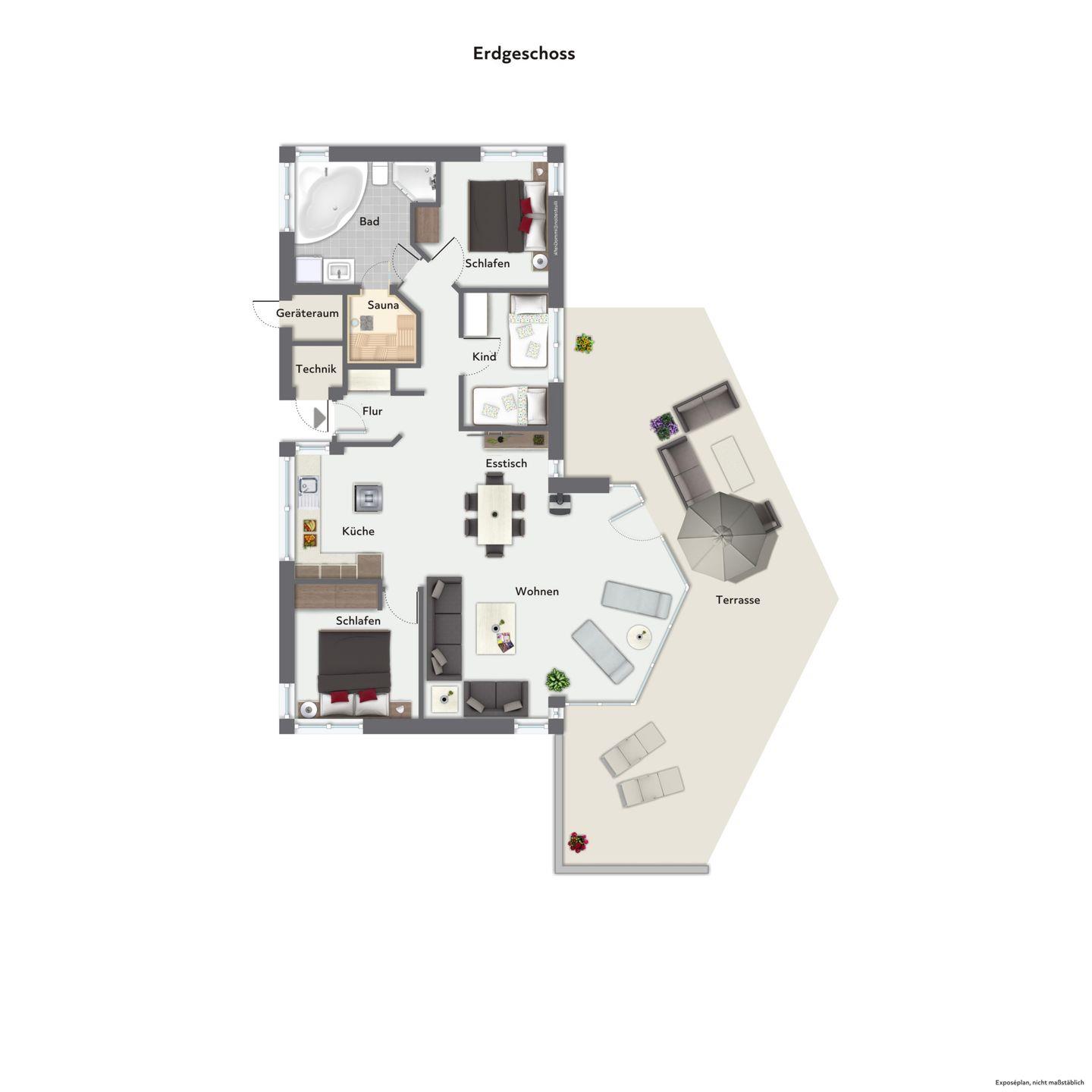 Die riesige Terrasse ist ein echtes Highlight! Ausgestattet mit Gartenmöbeln und einem Grill, ist sie der perfekte Ort für gesellige Grillabende und entspannte Sonnenstunden. Ob ein Buch auf der Terrasse lesen oder toben im Garten: Aktive und passive Erholung findest Du auf diesem fantastischen Grundstück.