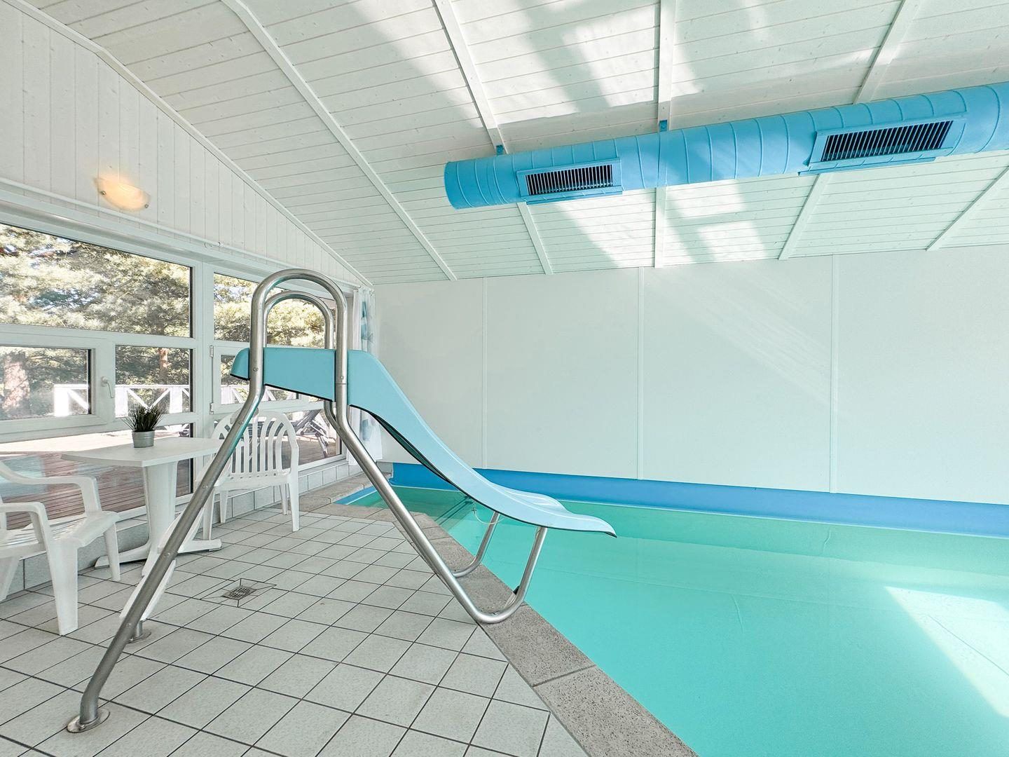 Ein großer Indoor-Pool mit Rutsche, Whirlpool (für bis zu 5 Personen), Dampfbad und Sauna. Whirpool und Dampfbad garantieren Ihnen wetterunabhängig einen großartigen Familienurlaub! Der Kaminofen sorgt für besonders angenehme Atmosphäre zur kälteren Jahreszeit!