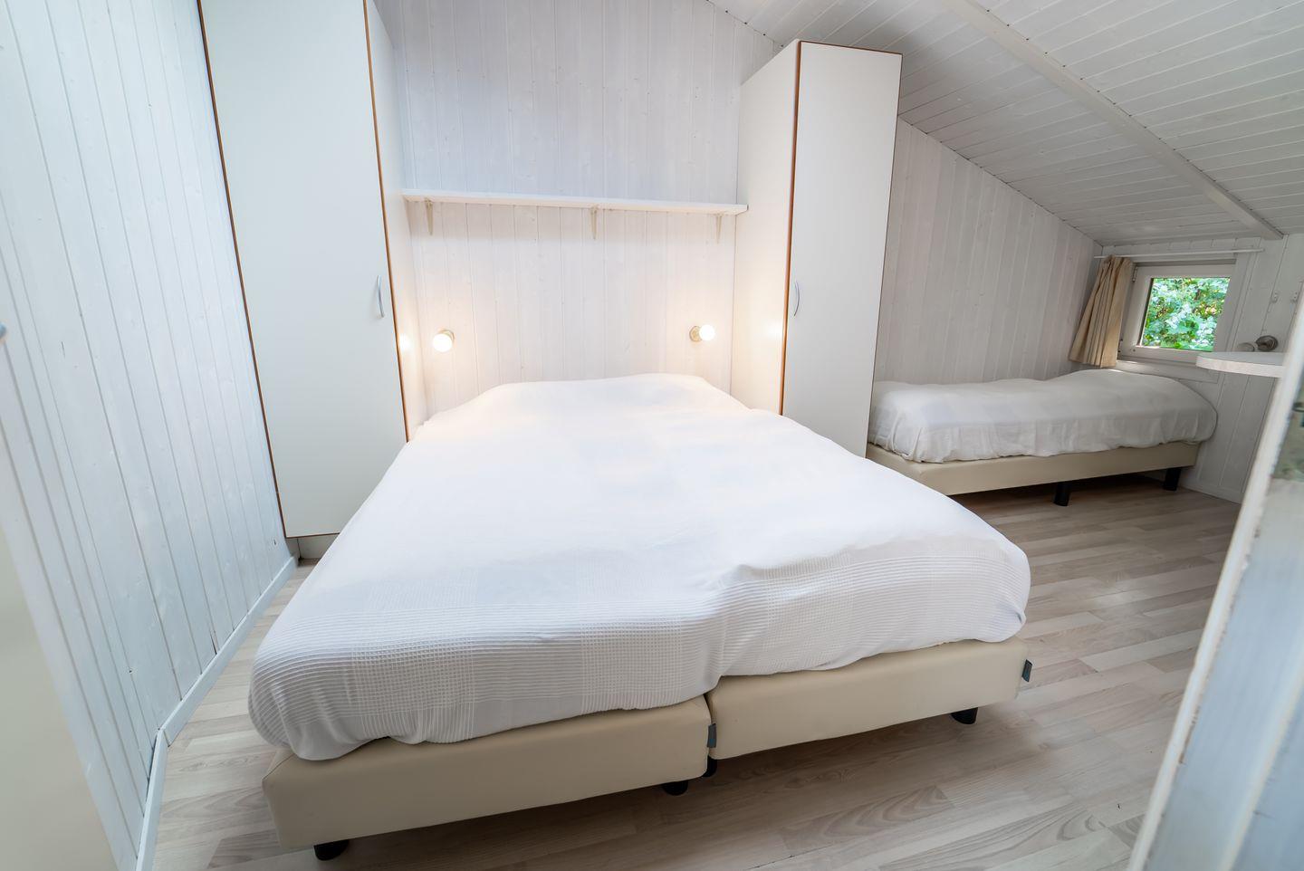 Drei Schlafzimmer sind mit zwei Einzelbetten (je 80 x 200) ausgestattet, die zu Doppelbetten zusammengeschoben sind. Zwei Schlafzimmer verfügen über jeweils 2 Einzelbetten (je 80 x 200) und in der Alkove befinden sich zwei Einzelbetten (je 80 x 200). Jedes Schlafzimmer bietet einen geräumigen Kleiderschrank für Deine Urlaubsgarderobe.