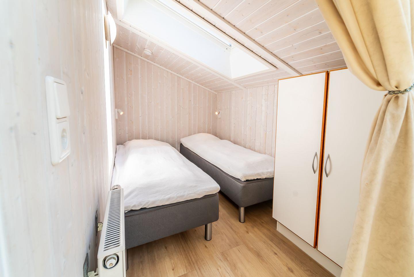 Vier Schlafzimmer sind mit zwei Einzelbetten (je 80 x 200) ausgestattet, die zu Doppelbetten zusammengeschoben sind. In zwei Alkoven befinden sich jeweils zwei Einzelbetten (je 80 x 200). Jedes Schlafzimmer bietet einen geräumigen Kleiderschrank für Deine Urlaubsgarderobe.