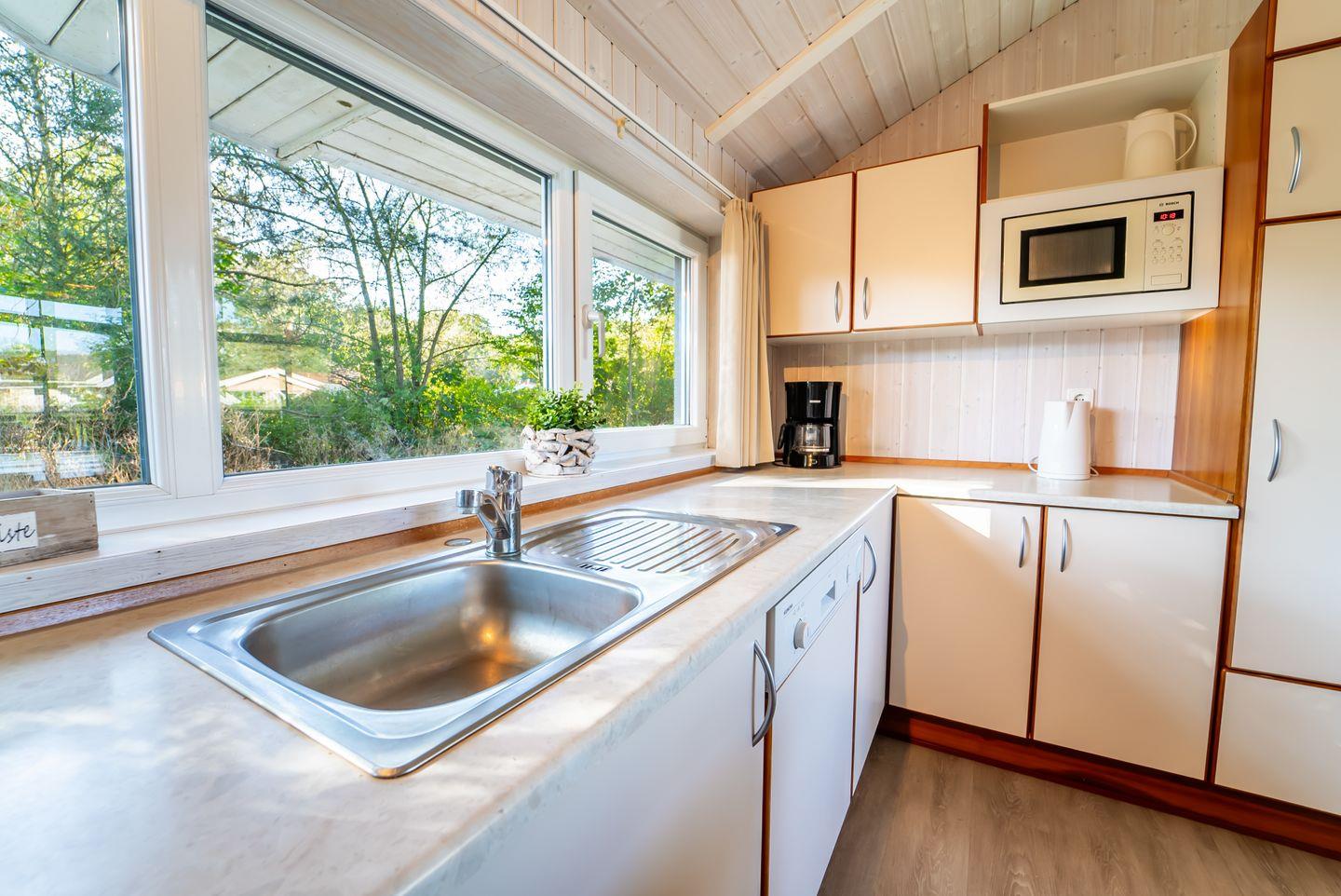 Die Kücheninsel schafft eine lässige Stimmung innerhalb des Ferienhauses. Hier findest Du alles, was Du für die Zu- und Nachbereitung leckerer Mahlzeiten benötigst: