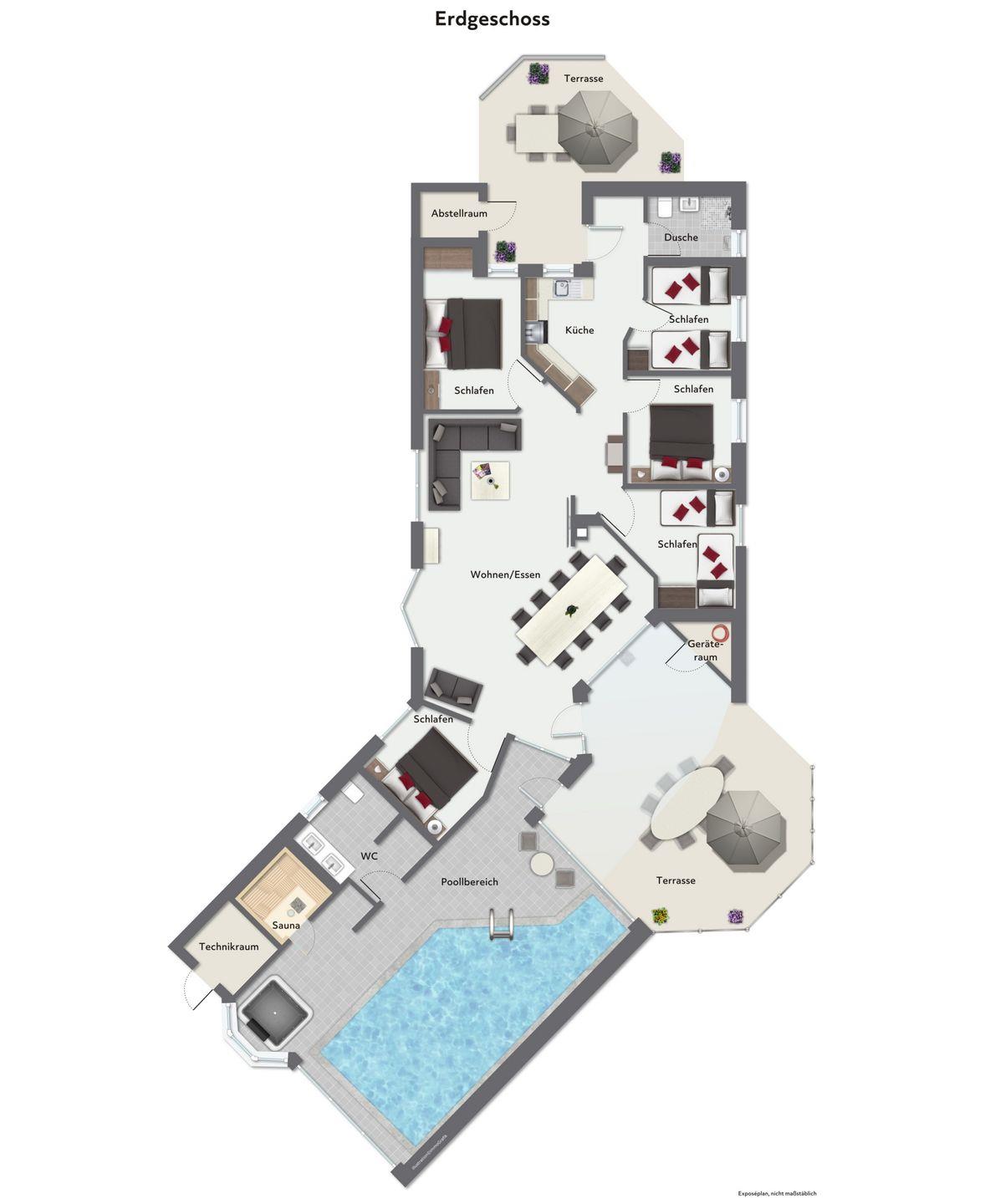 - Separate Sauna, Whirlpool (für bis zu 5 Personen) und Pool für Wellness pur