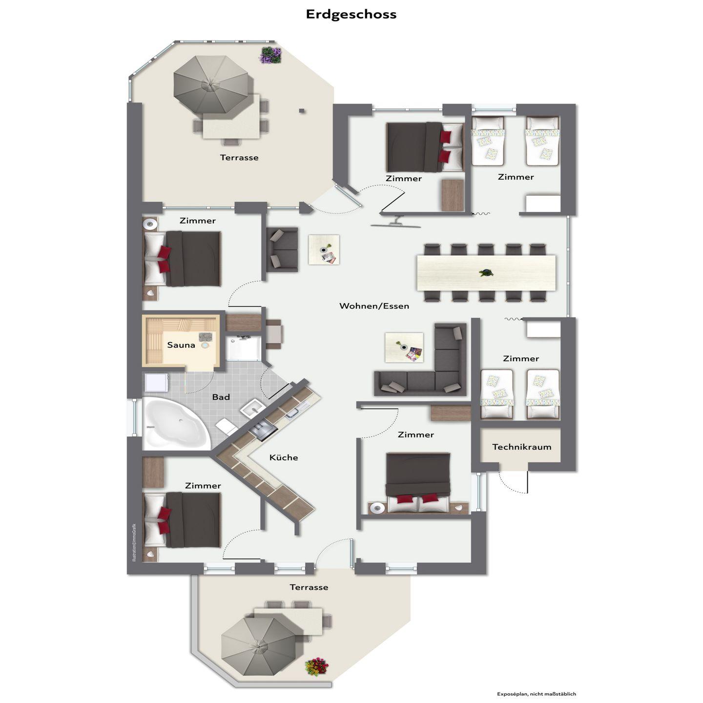 - 4 Schlafzimmer mit Doppelbetten