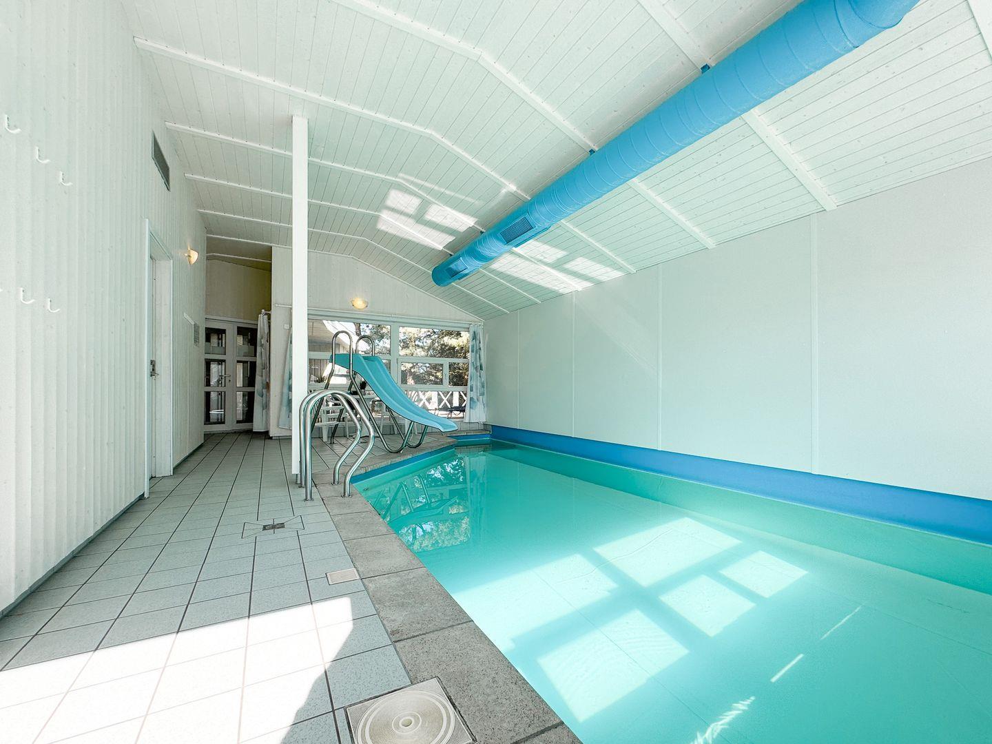 Ein großer Indoor-Pool mit Rutsche, Whirlpool, Dampfbad und Sauna. Whirpool und Dampfbad garantieren Ihnen wetterunabhängig einen großartigen Familienurlaub!