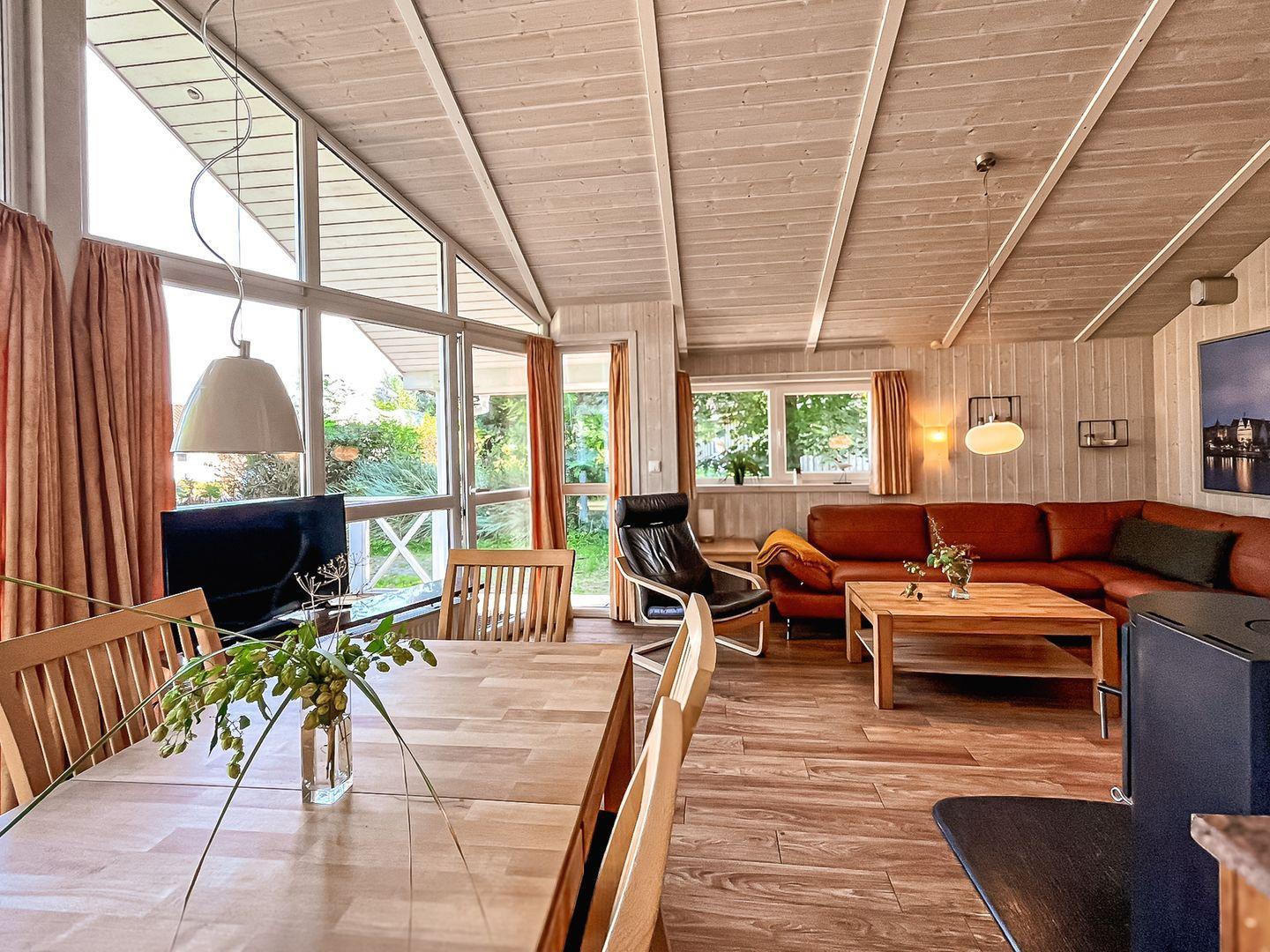 Eine große Glasfront schafft durch großartiges Licht eine besonders freundliche Atmosphäre im Wohnbereich sowie einen einmaligen Blick auf die Ostsee.