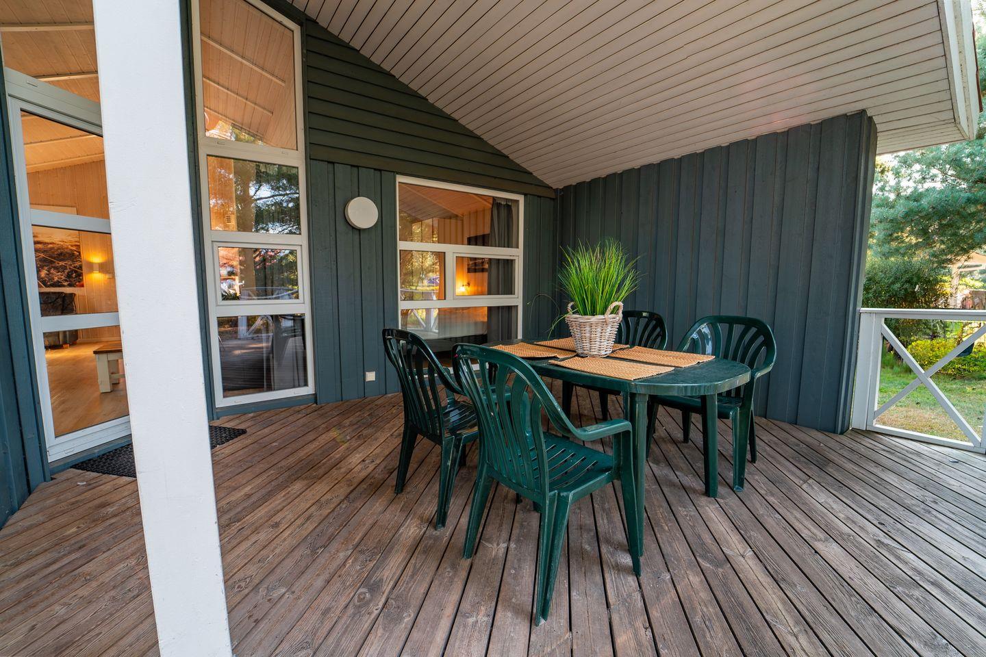 Die südliche Terrasse ist überdacht, während die nördliche Terrasse offen und Richtung Ostsee ausgerichtet ist.