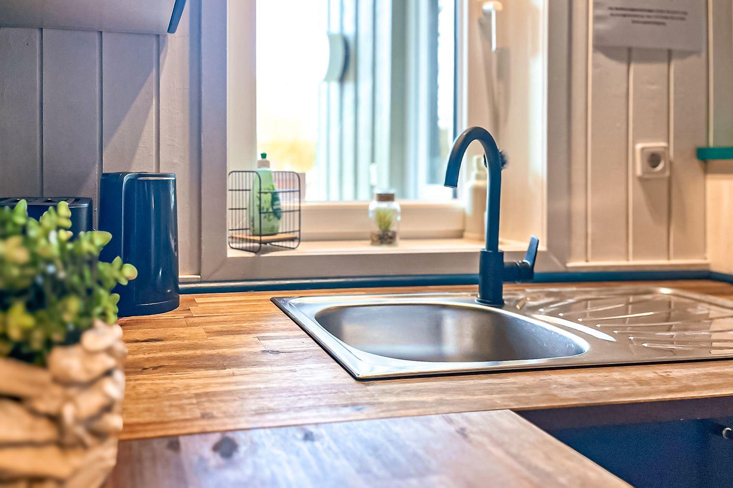 Die gut ausgestattete Küchenzeile lässt keine Wünsche offen. Hier findest Du beispielsweise: