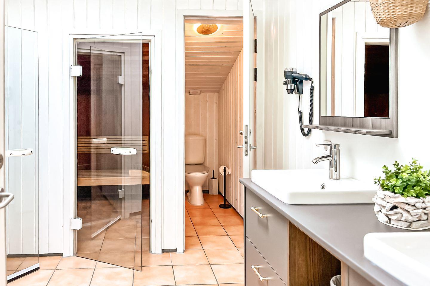 Zusätzlich gibt es ein Gäste-WC mit Dusche.