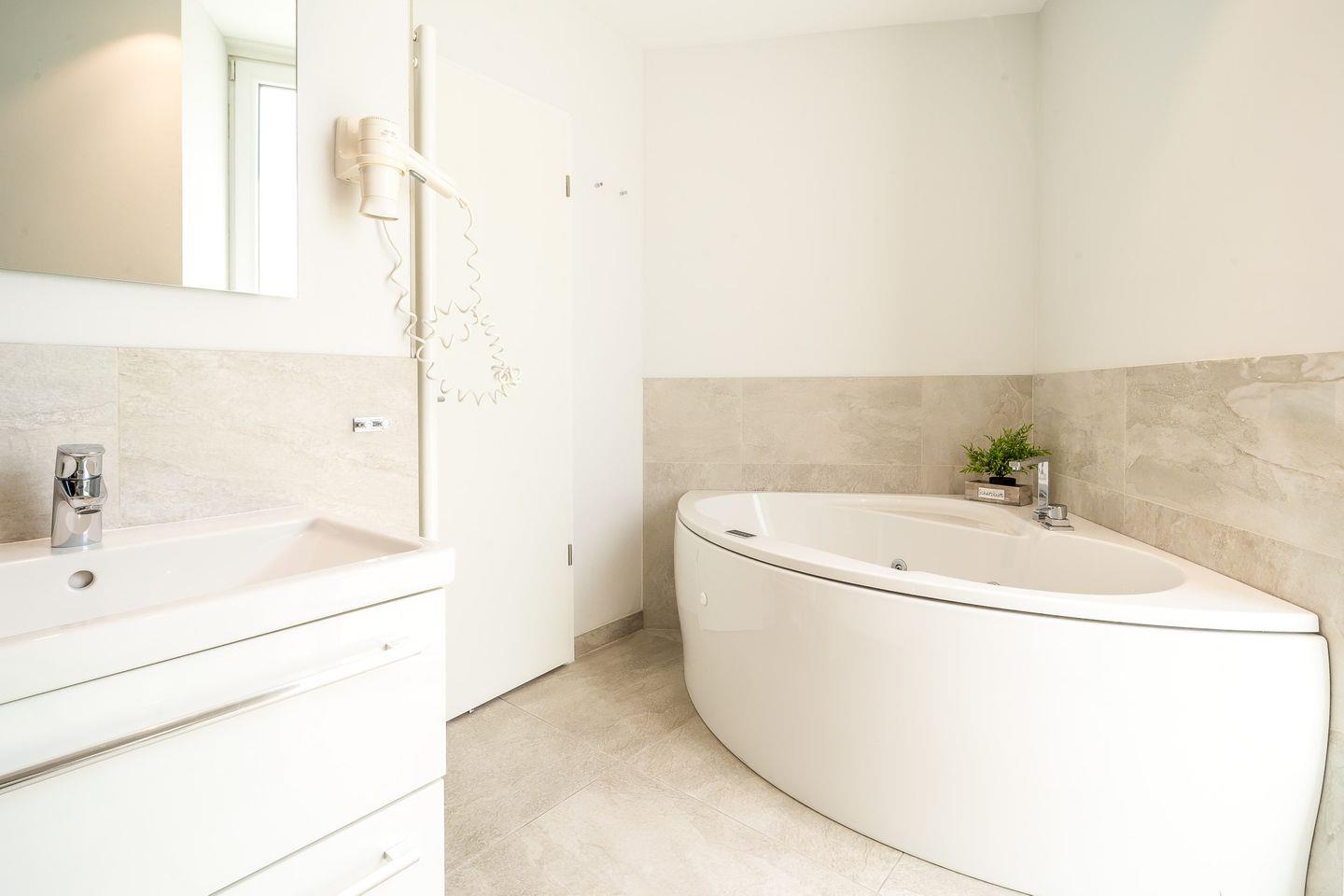 Ein echtes Highlight ist das Badezimmer: Hier hast Du Deine eigene kleine Wellnessoase mit moderner Badewanne mit wohltuender Whirlpool-Funktion, Sauna und einem Dampfbad mit integrierter Doppelregendusche. Perfekt, um nach einem Strandtag zu entspannen.